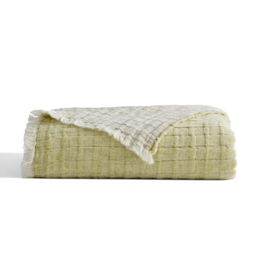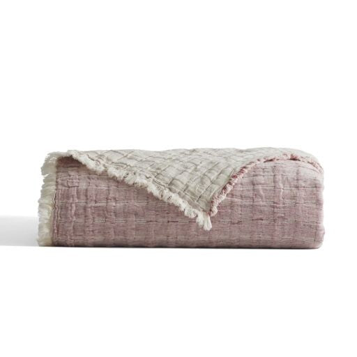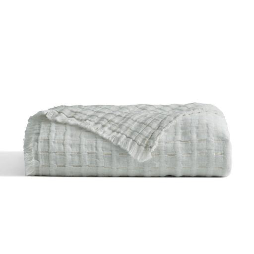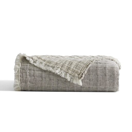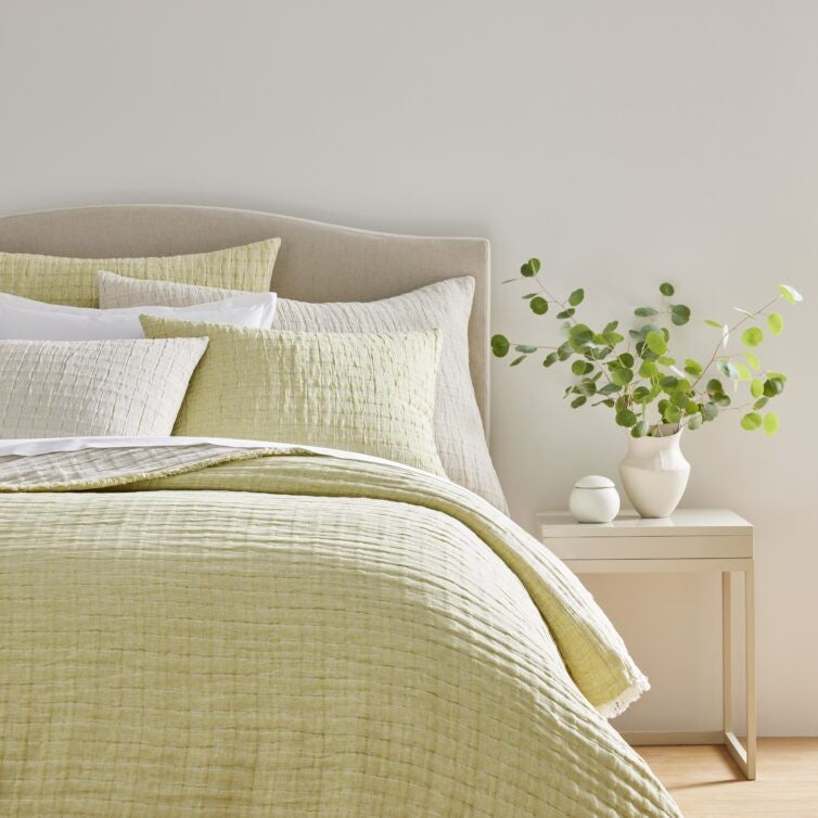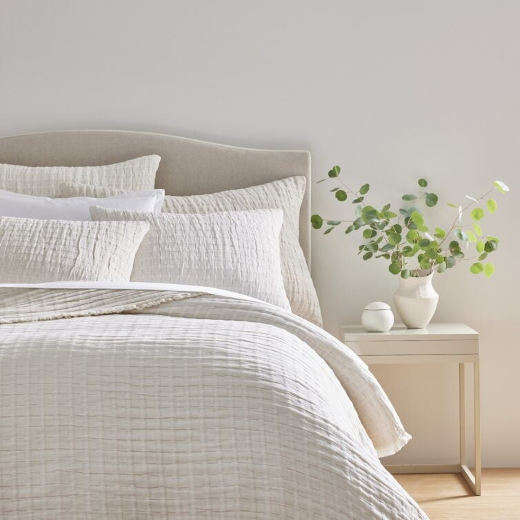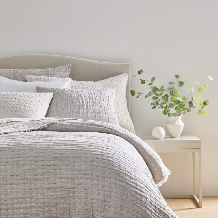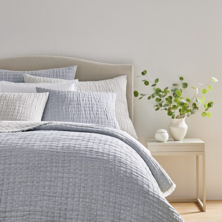 Devon coverlets and throws are woven from a cotton-linen blend for exceptional color depth and lightweight comfort. Each piece is fully reversible for versatile styling. Throws and coverlets are finished with a delicate eyelash fringe, and shams feature a hidden zipper closure for a refined look.
