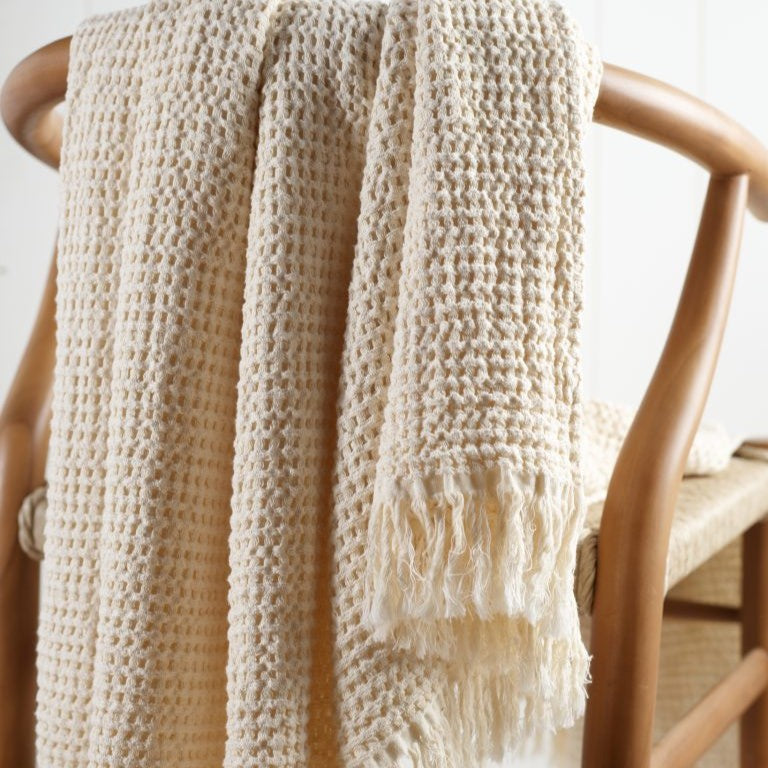 Jenna waffle blankets are woven from pure cotton in a soft and appealing texture that draws you into comfort.