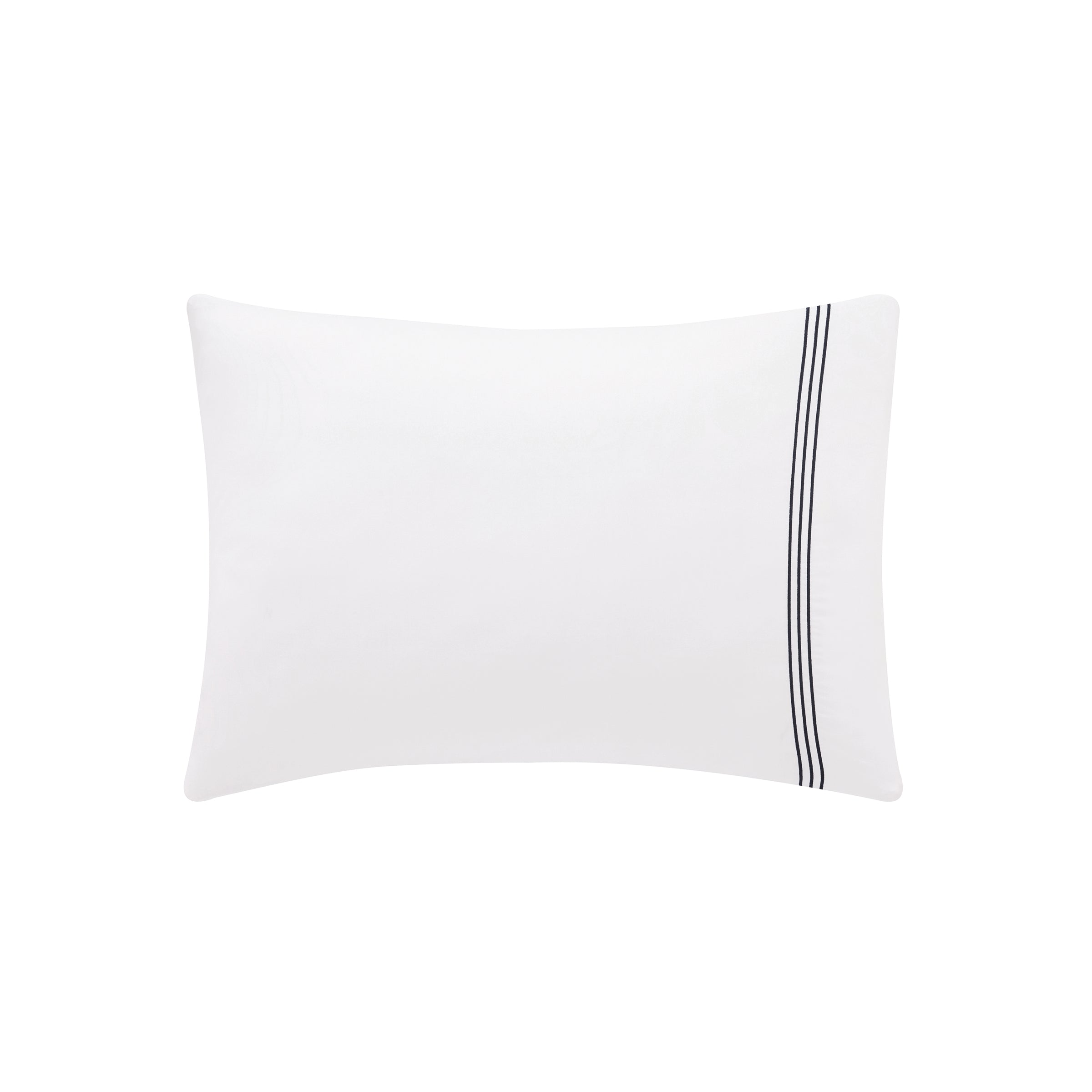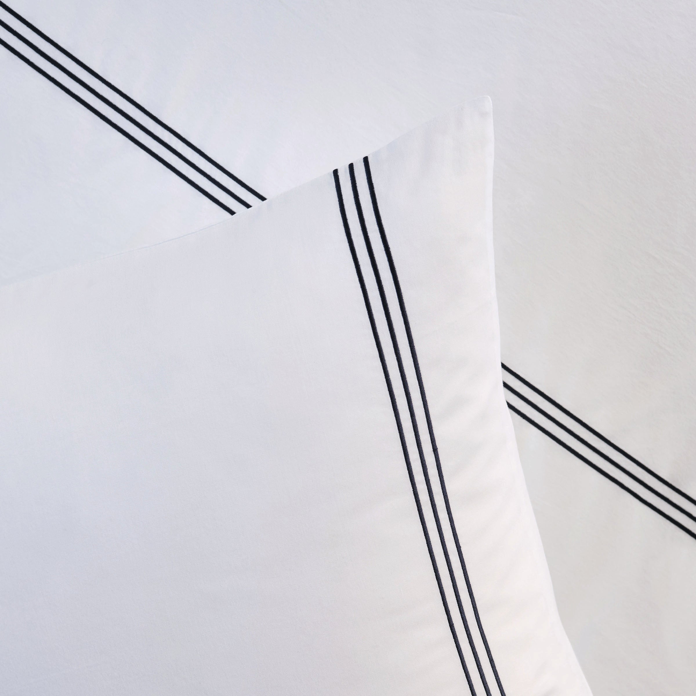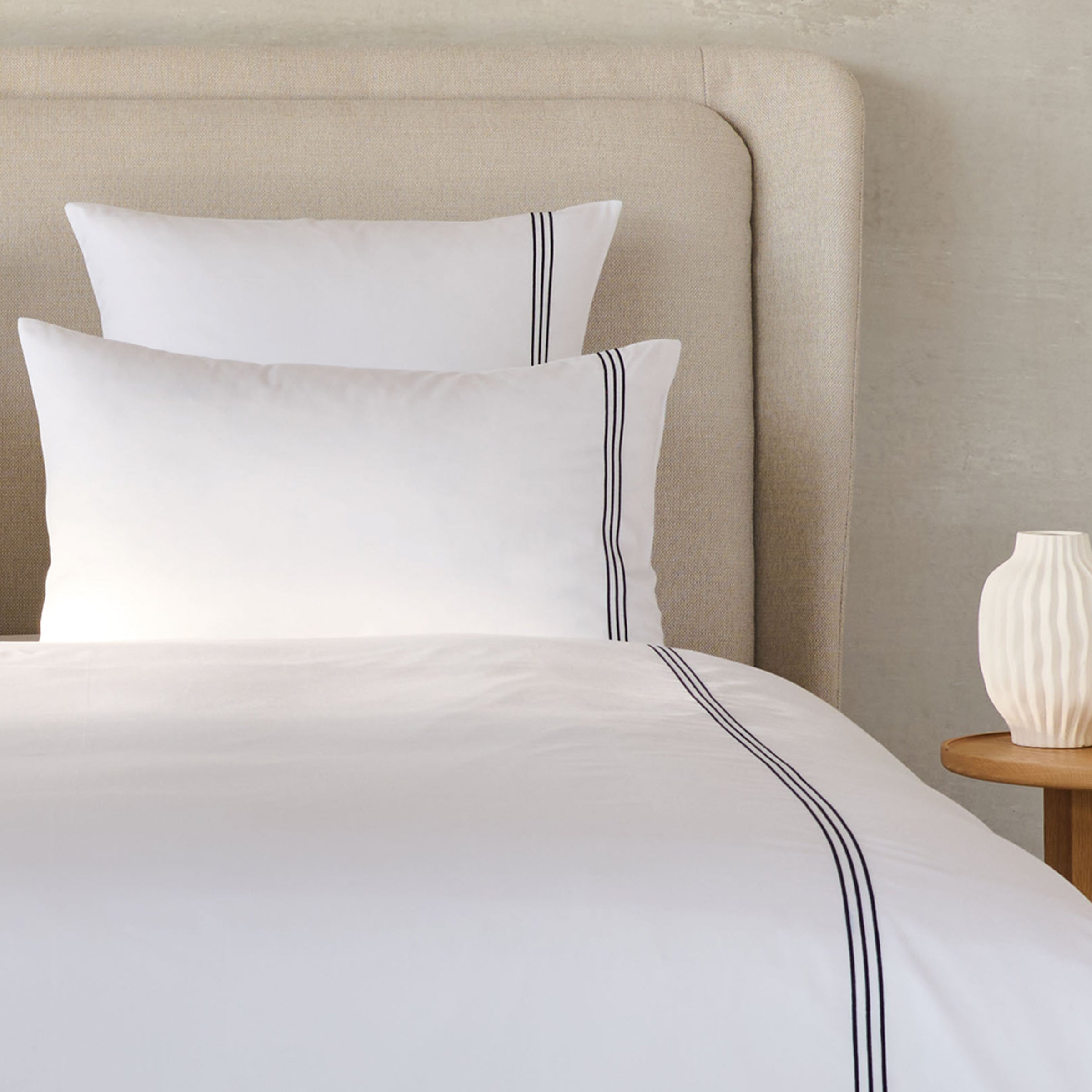A set of fine navy blue inset trims animates this set. A graphic design that evokes luxury in its timelessness.