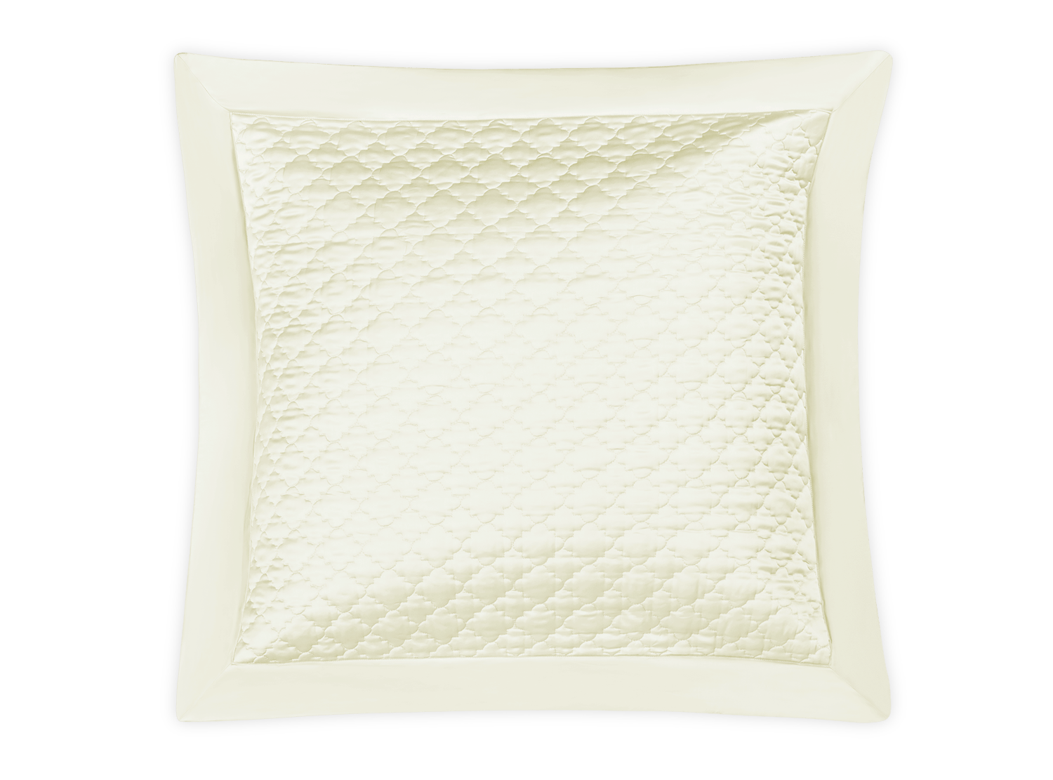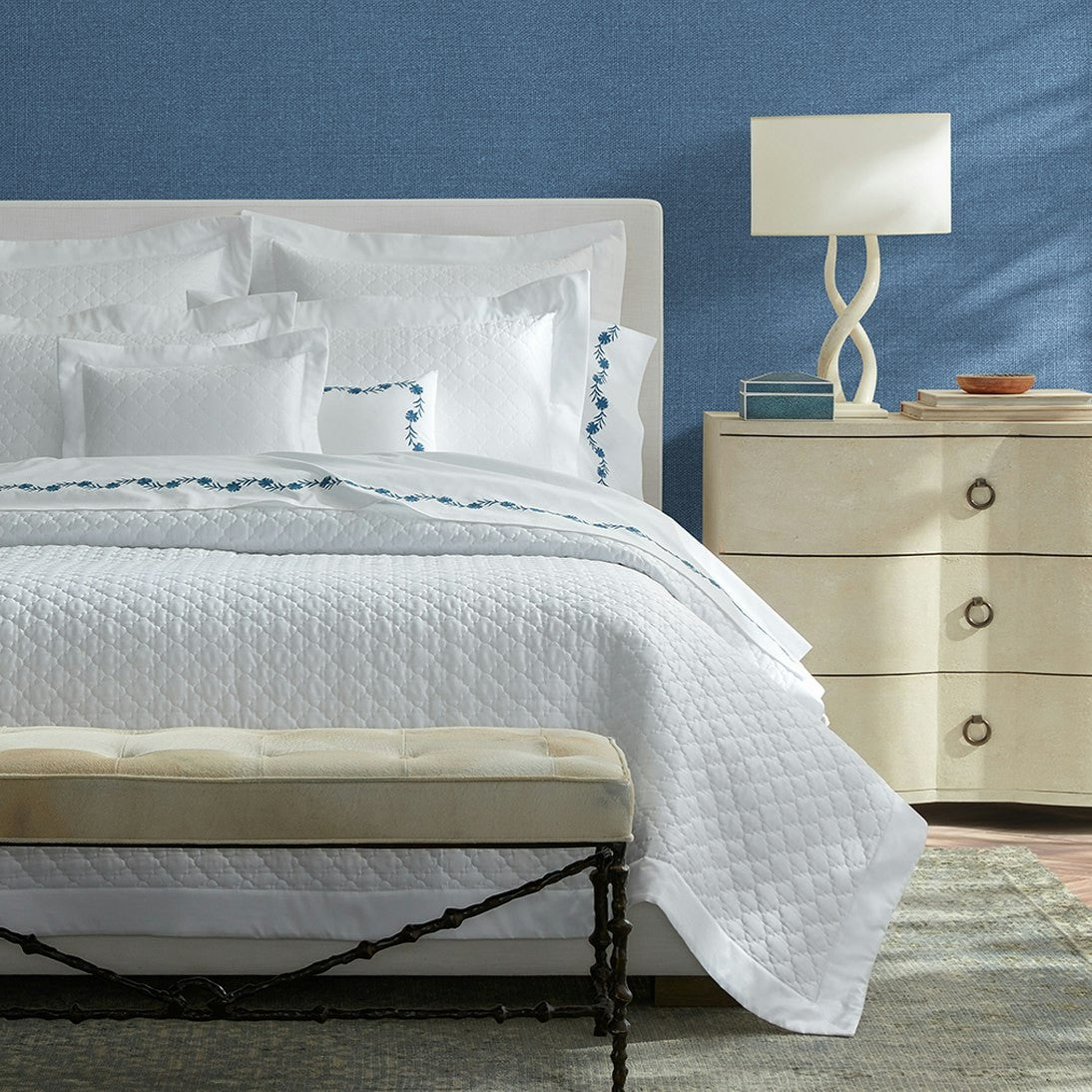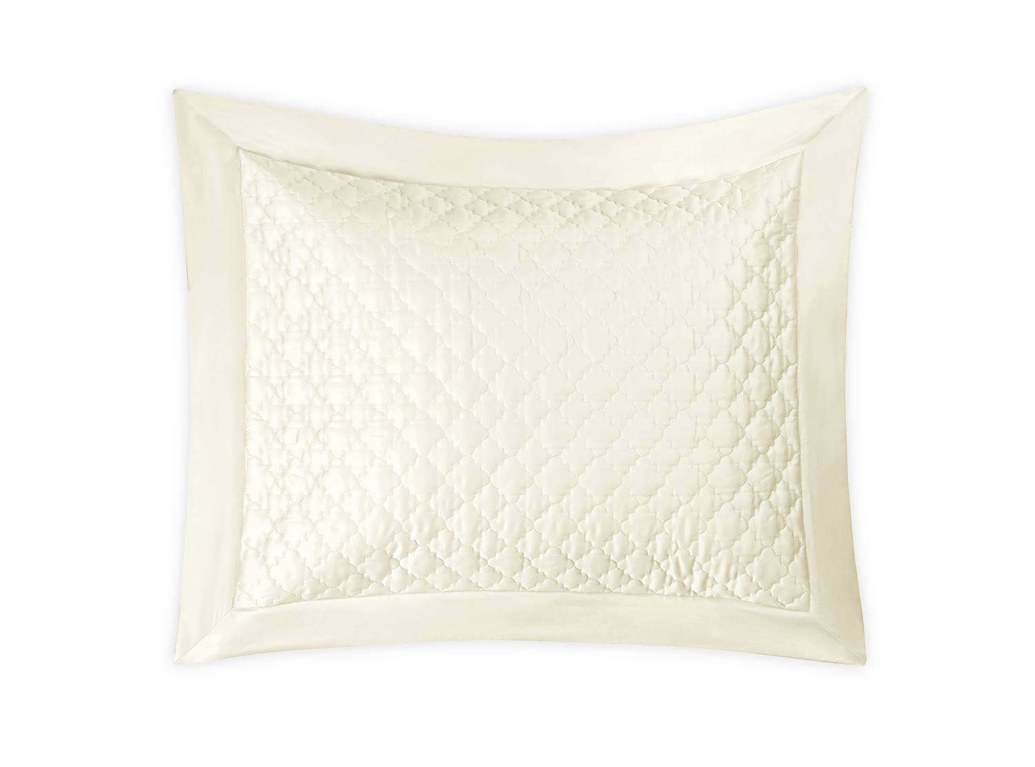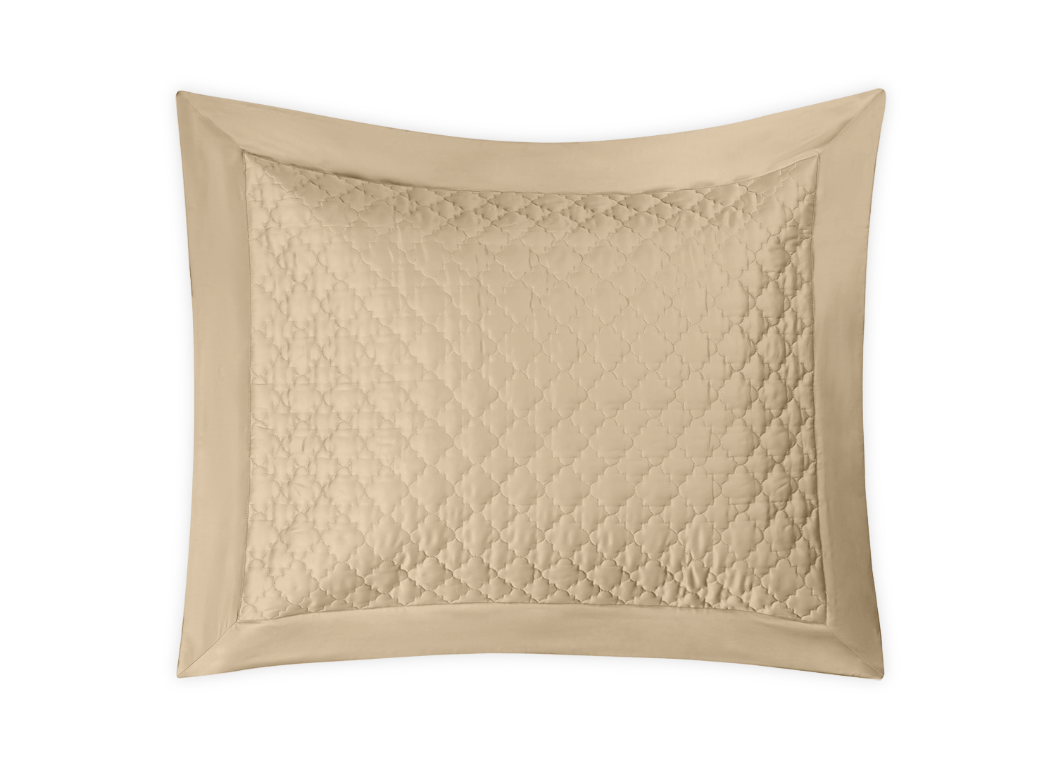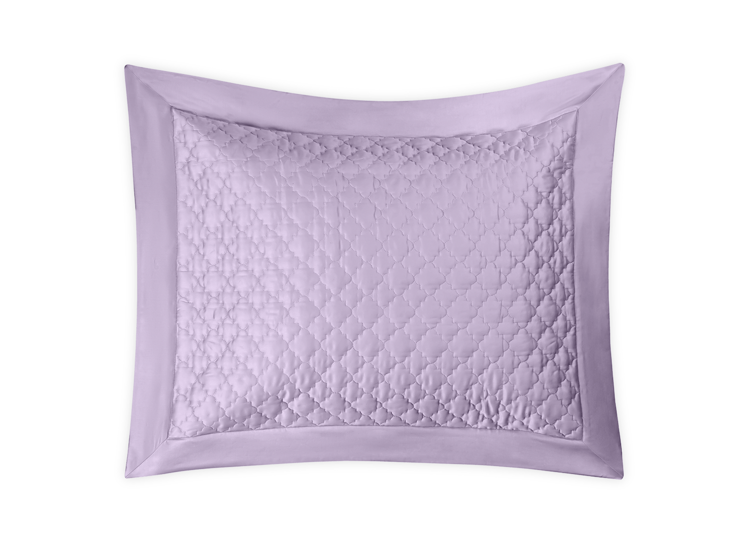 Nocturne cotton sateen is adorned with a quilted quatrefoil design. The fabric has a subtle sheen that epitomizes a refined luxury for today’s home. A tailored, plain cuff on the quilt and shams adds the perfect finish. Made in the USA.