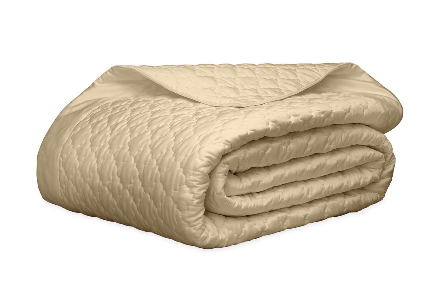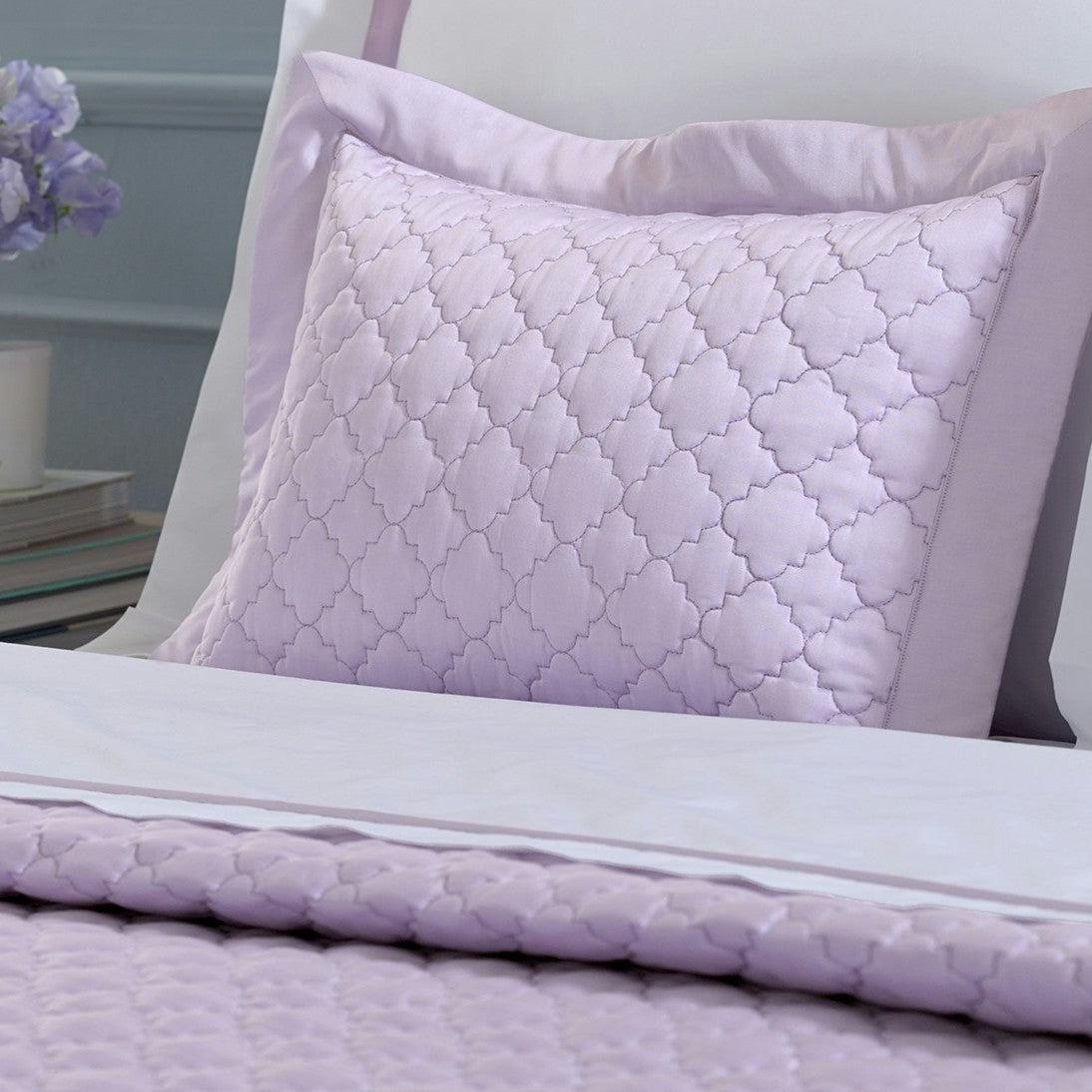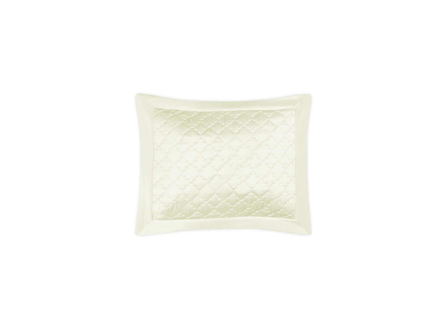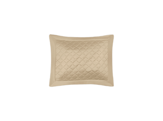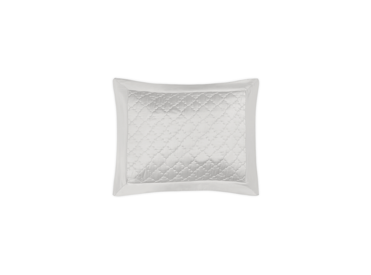 Nocturne cotton sateen is adorned with a quilted quatrefoil design. The fabric has a subtle sheen that epitomizes a refined luxury for today’s home. A tailored, plain cuff on the quilt and shams adds the perfect finish. Made in the USA.