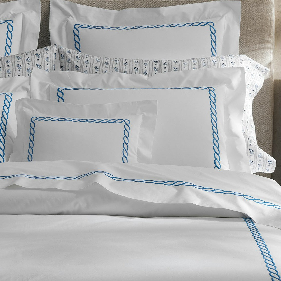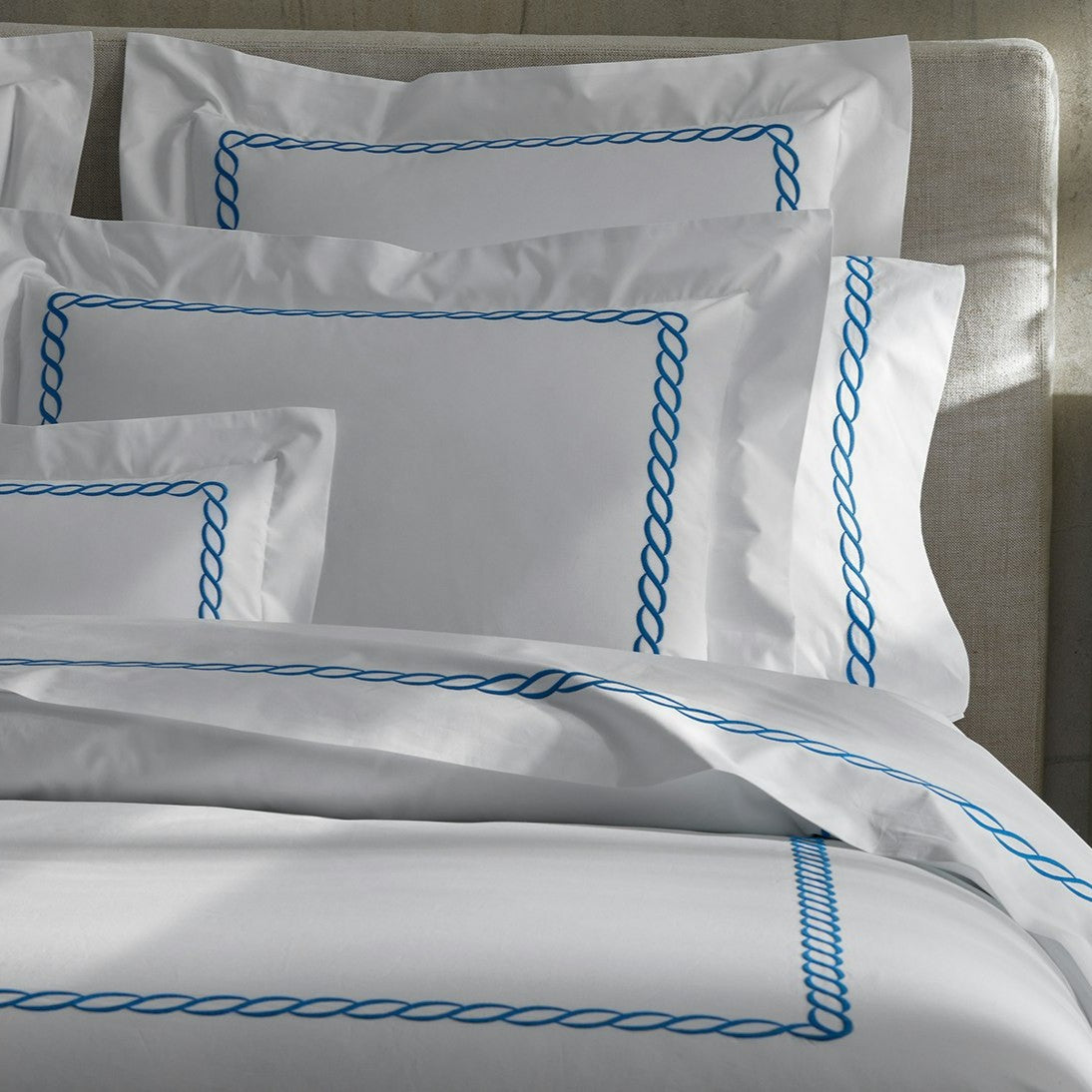 The Classic Chain collection offers an updated take on an iconic Greek motif. Embroidered on crisp, 520 thread count Ceylon cotton percale, this time-honored design comes in an array of shades and exudes a quintessentially classic appeal. Made in the USA.