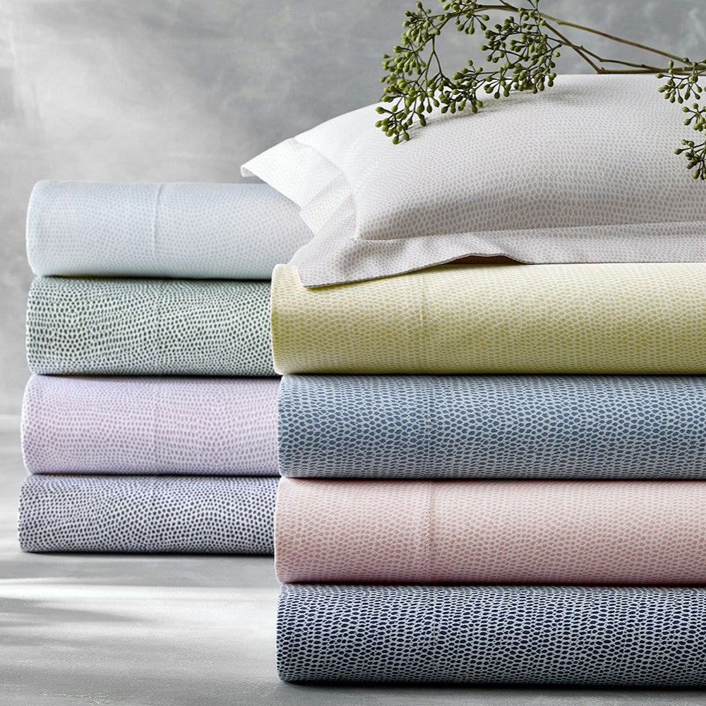 Featuring a signature Matouk print inspired by the luxurious pebbled texture of shagreen, Jasper is crafted from silky smooth sateen sheeting. Endlessly versatile with a contemporary feel and available in an array of refreshing colors. Made in the USA.