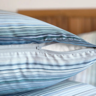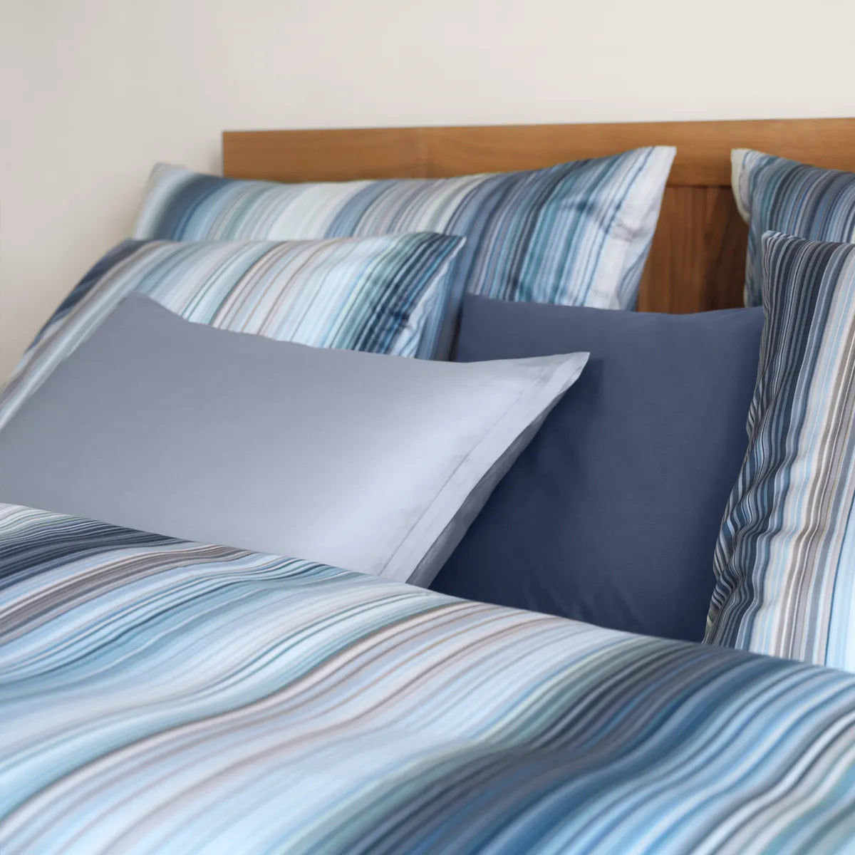 Heavy summer rain or simply a welcome change of perspective? The bed linen LORIS is painted in a timeless striped design and impresses with its calm aura. The composition of narrow and wide sections and subtle contrasts between dark and light tones may provide surprising inspiration to sketch your own impressions – or to celebrate the rhythmic aspects of life in your dreams. Weighed at 110 g/m2.