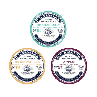 This gift set contains all three of C.O. Bigelow's newest all-purpose salves that care for lips and beautify skin.