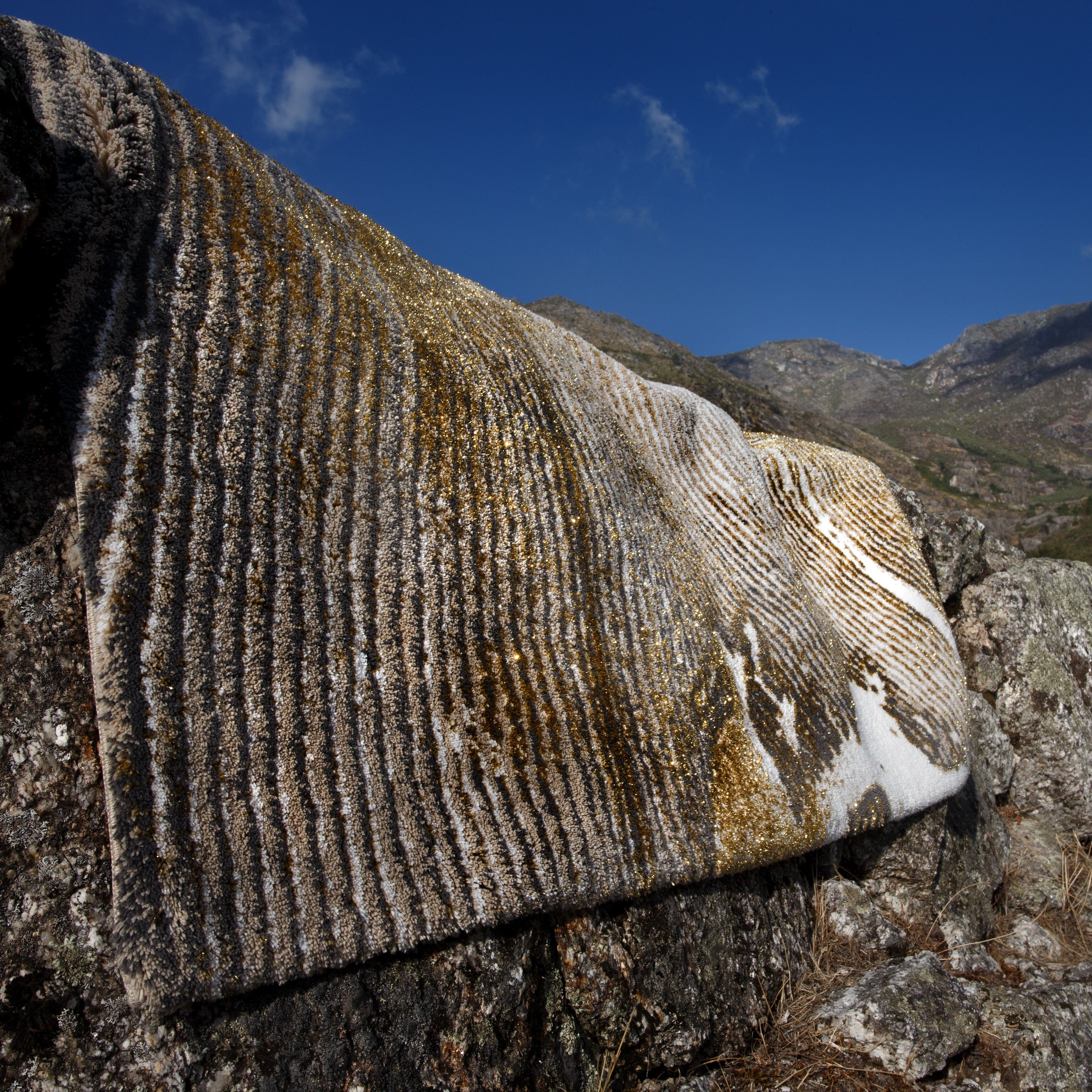 Soft serenity in a rug. This peaceful sand garden is sure to instill tranquility and balance in your washroom or space. Weighed at 2200 g/m2. Made in Portugal.