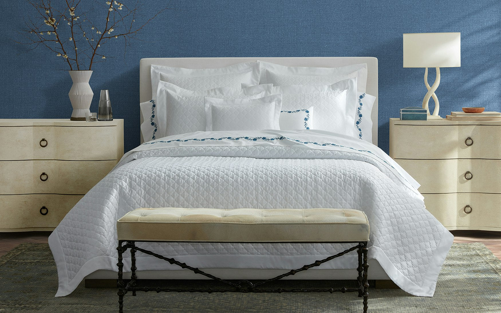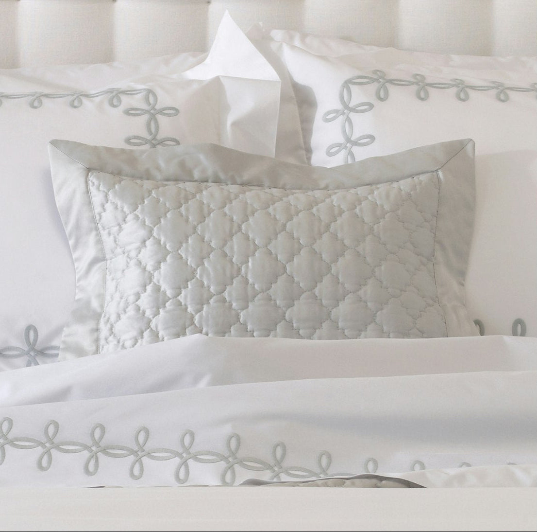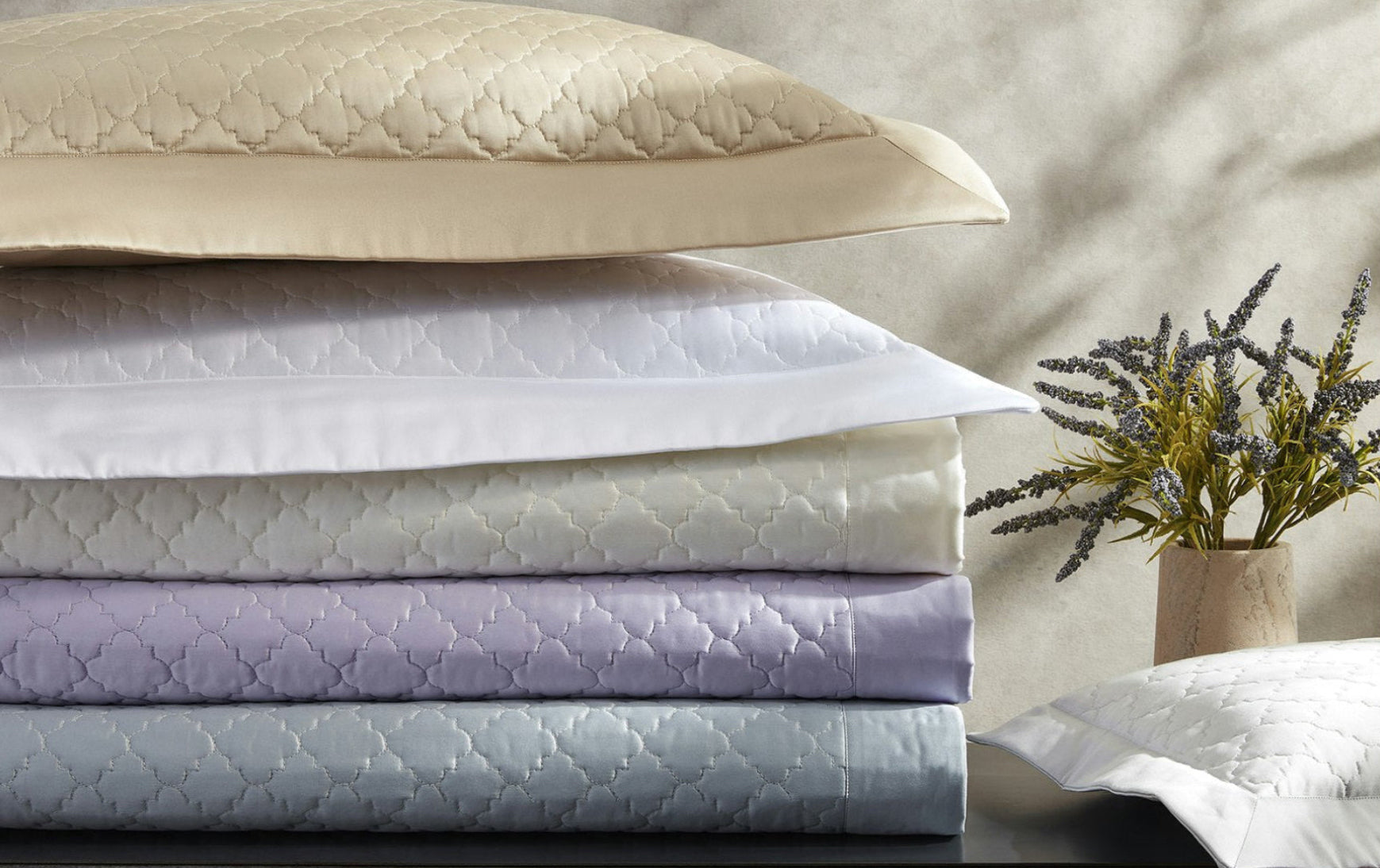 Elegant quatrefoil motif quilted on Nocturne sateen with plain cuff 600 thread count Egyptian cotton