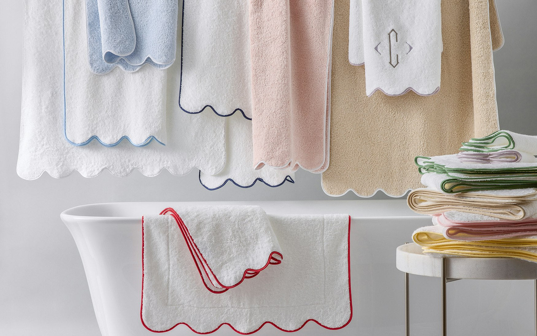 In the Cairo collection, a simple design is simply beautiful. Its pure, plush 100% long-staple cotton terry is unadorned but for a piped scallop edge in an array of vibrant hues.