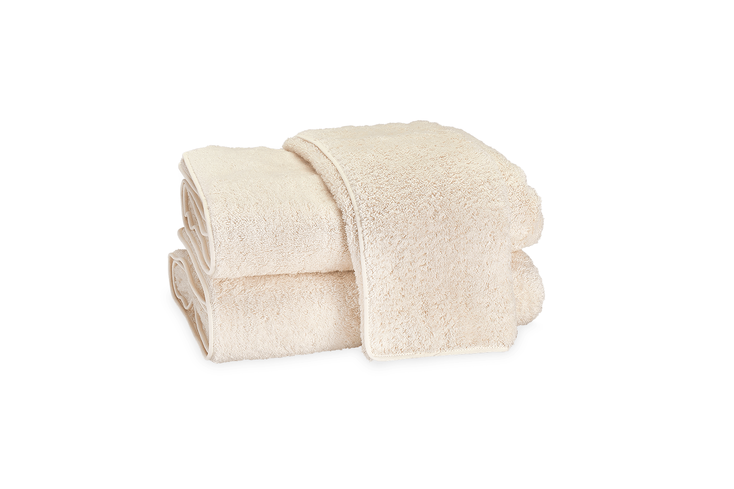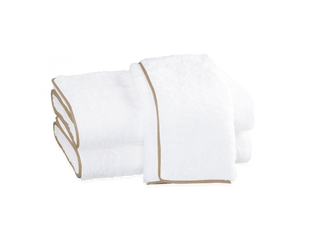 In the Cairo collection, a simple design is simply beautiful. Its pure, plush 100% long-staple cotton terry is unadorned but for a piped edge. You can opt for white trimmed with a pop of color or a natural tone with piping to match.
