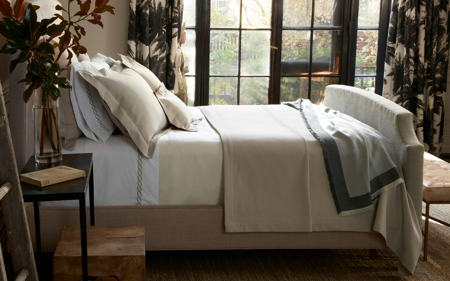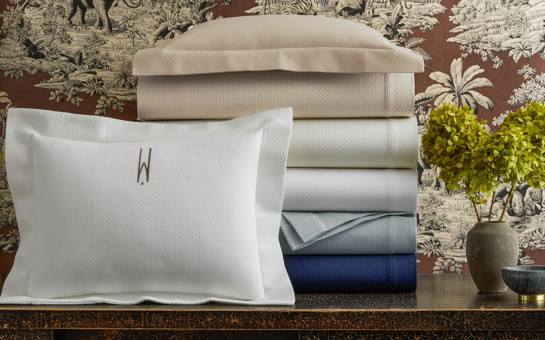 Contemporary chic with timeless details, think of our easy-care diamond pique finished with a straight hem as a modern bedroom staple. Whether you layer with pattern or evoke a minimal look with solids, its textural allure has real presence.