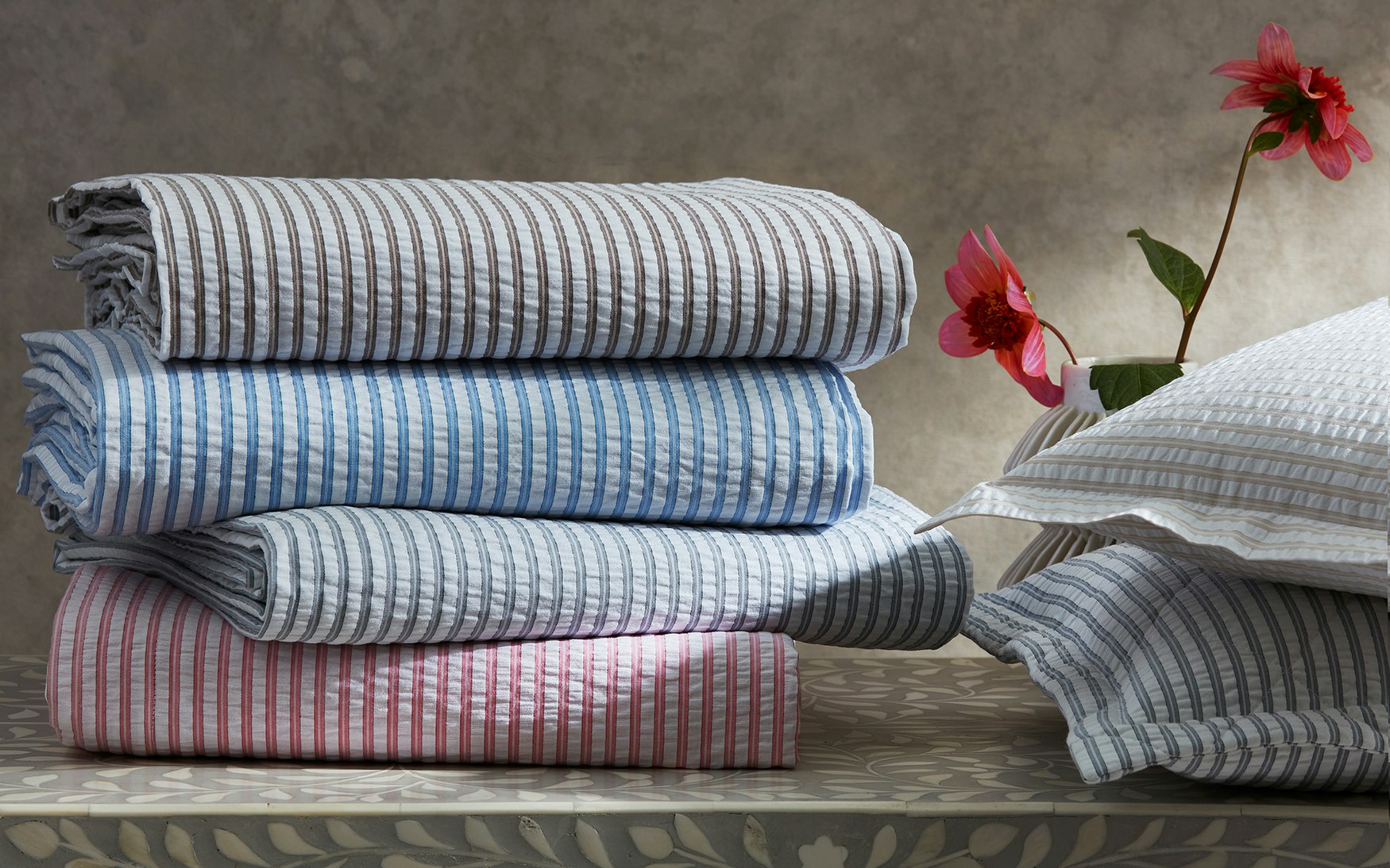 A classic seersucker stripe with the understated sophistication of tailored menswear.