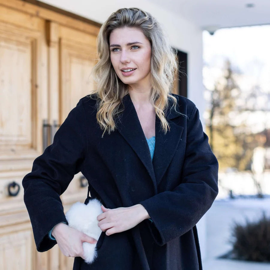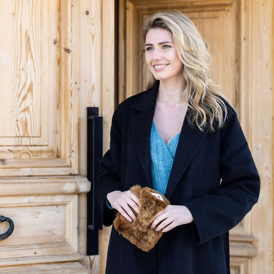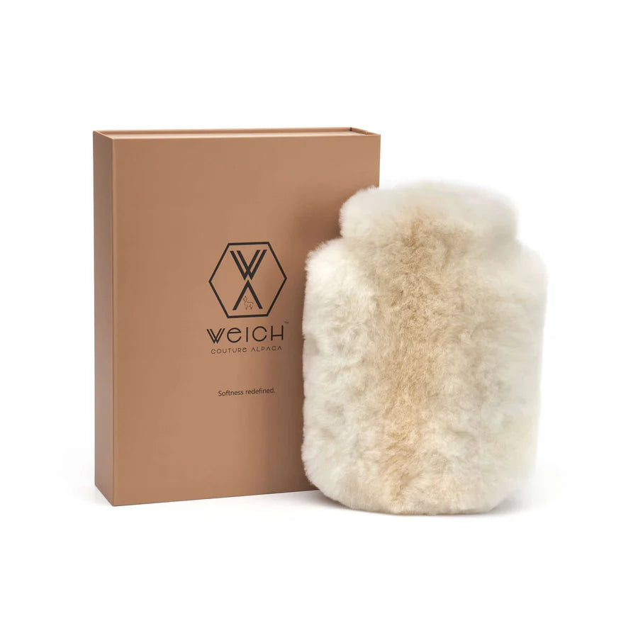 The unique WEICH hot water bottle not only visually enhances the otherwise monotonously drab hot water bottle, but also becomes an extraordinary, haptic experience thanks to its tender alpaca wrapping. Also unique are the very special thermal properties of the alpaca fiber, which provide a long-lasting warming effect. Warming beauty and world novelty.