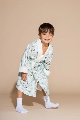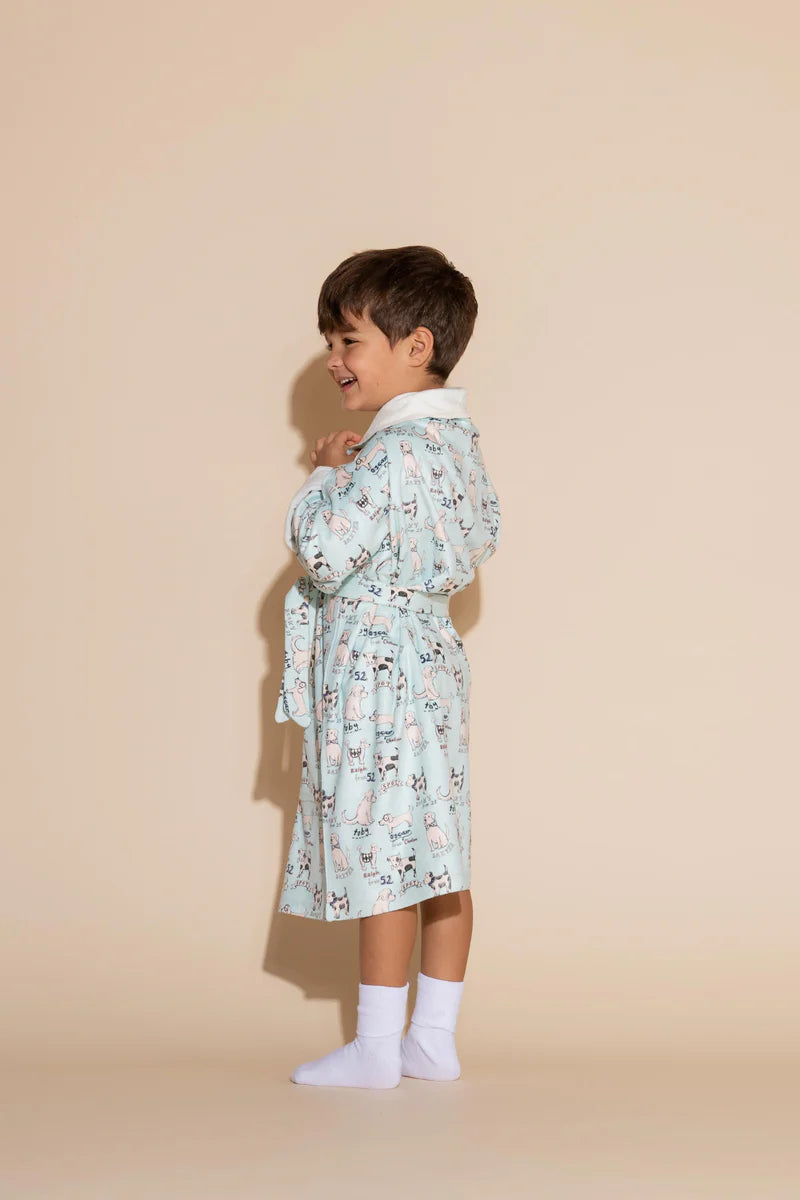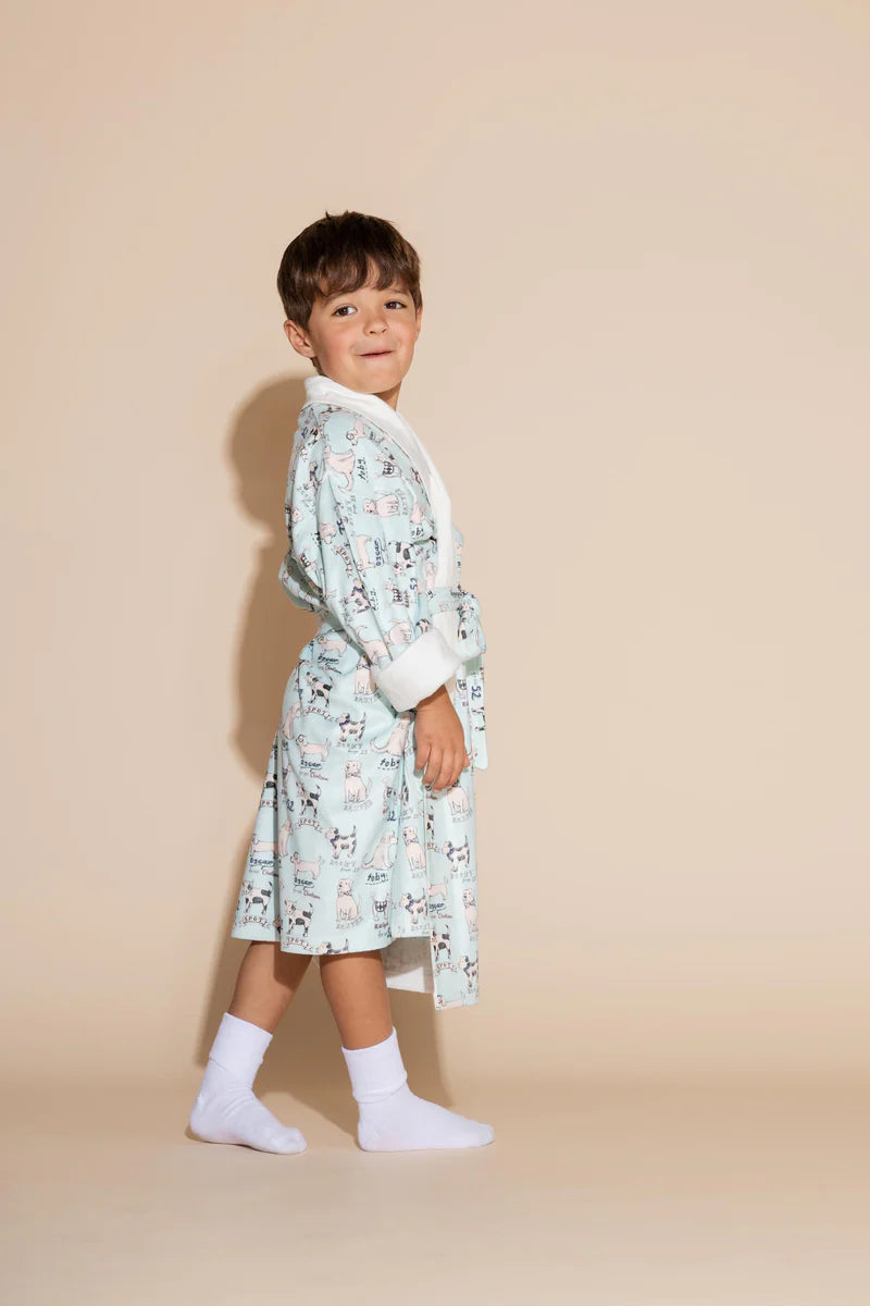The ultra-soft microfiber in this kids robe features Spot, Toby, Oscar, and more canines with a matching belt. The contrast collar and cuffs add to this cute and fun kids robe. Because a dog is your kid's best friend!
