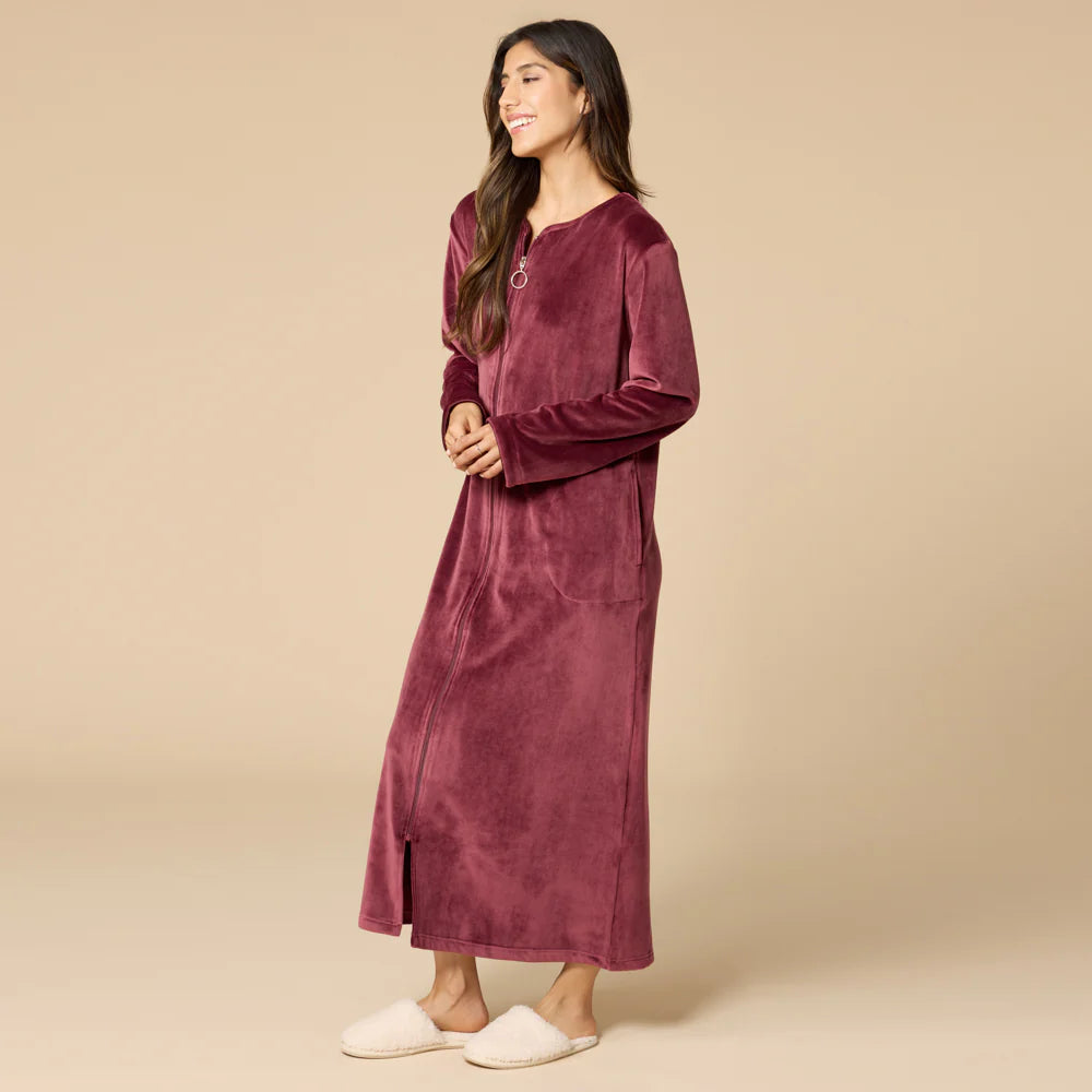 This robe brings a new level of softness to this timeless style. A full-length, breakaway zipper makes slipping into and out of it a breeze. A sweetheart neckline and matching satin trim add the perfect touch of elegance. Plus, its buttery soft fabric provides year-round warmth without the weight.