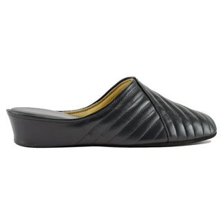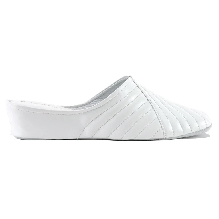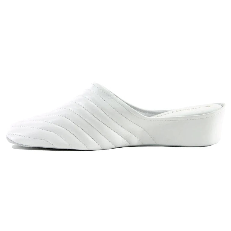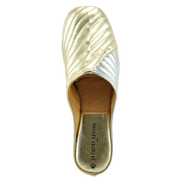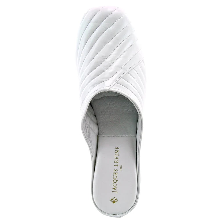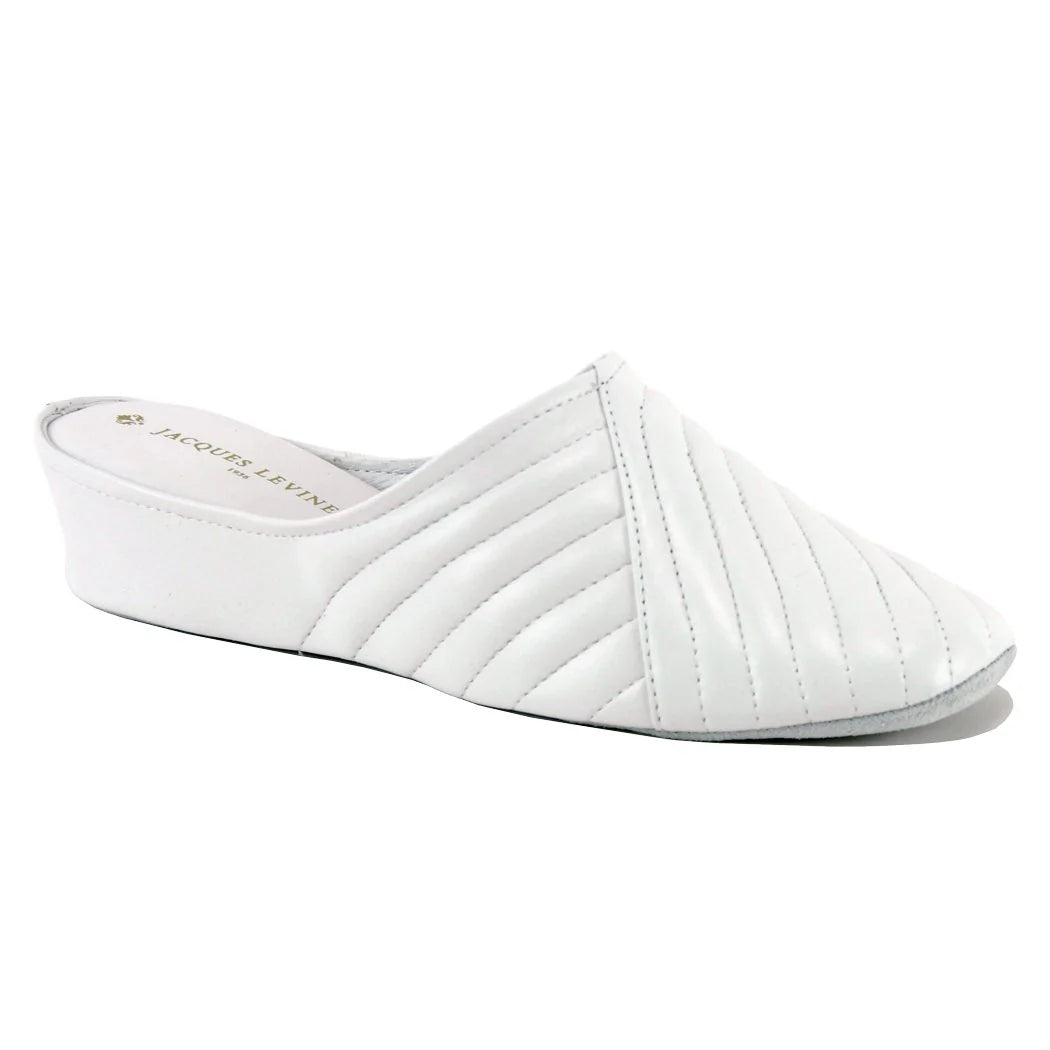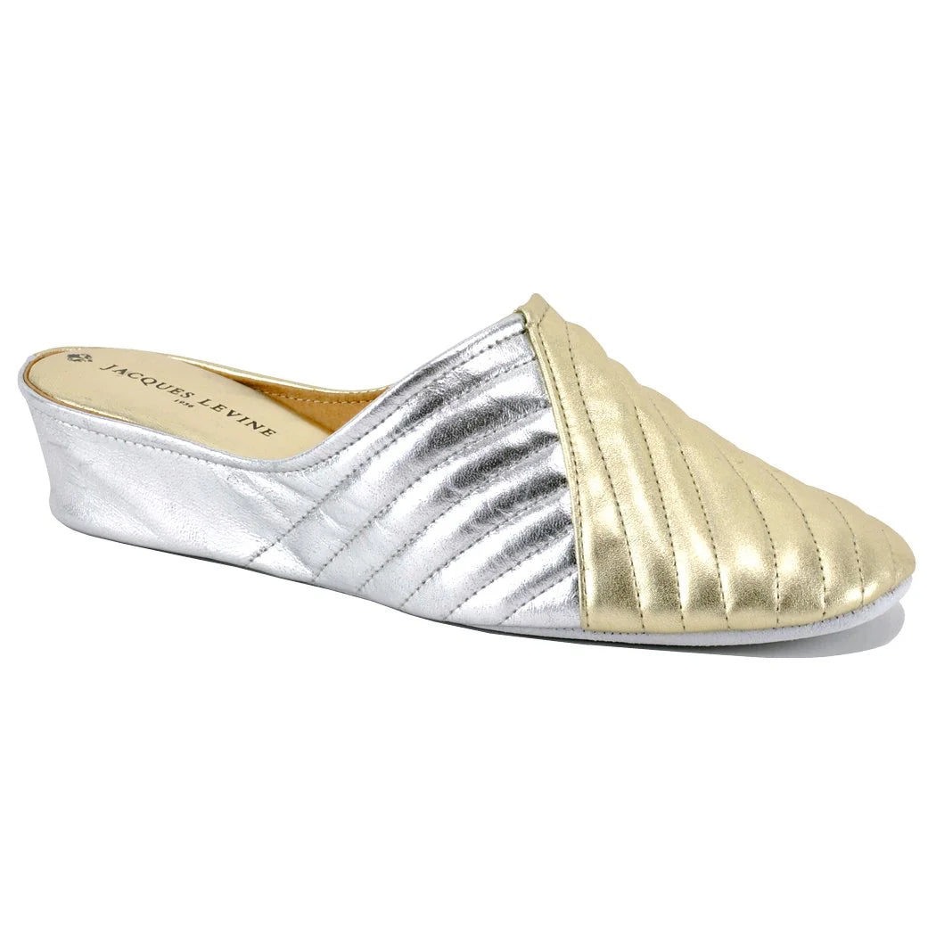 Signature comfort and style from Jacques Levine.  These slippers are pleasantly pleated for a classic look. Made in Spain.
