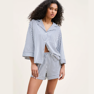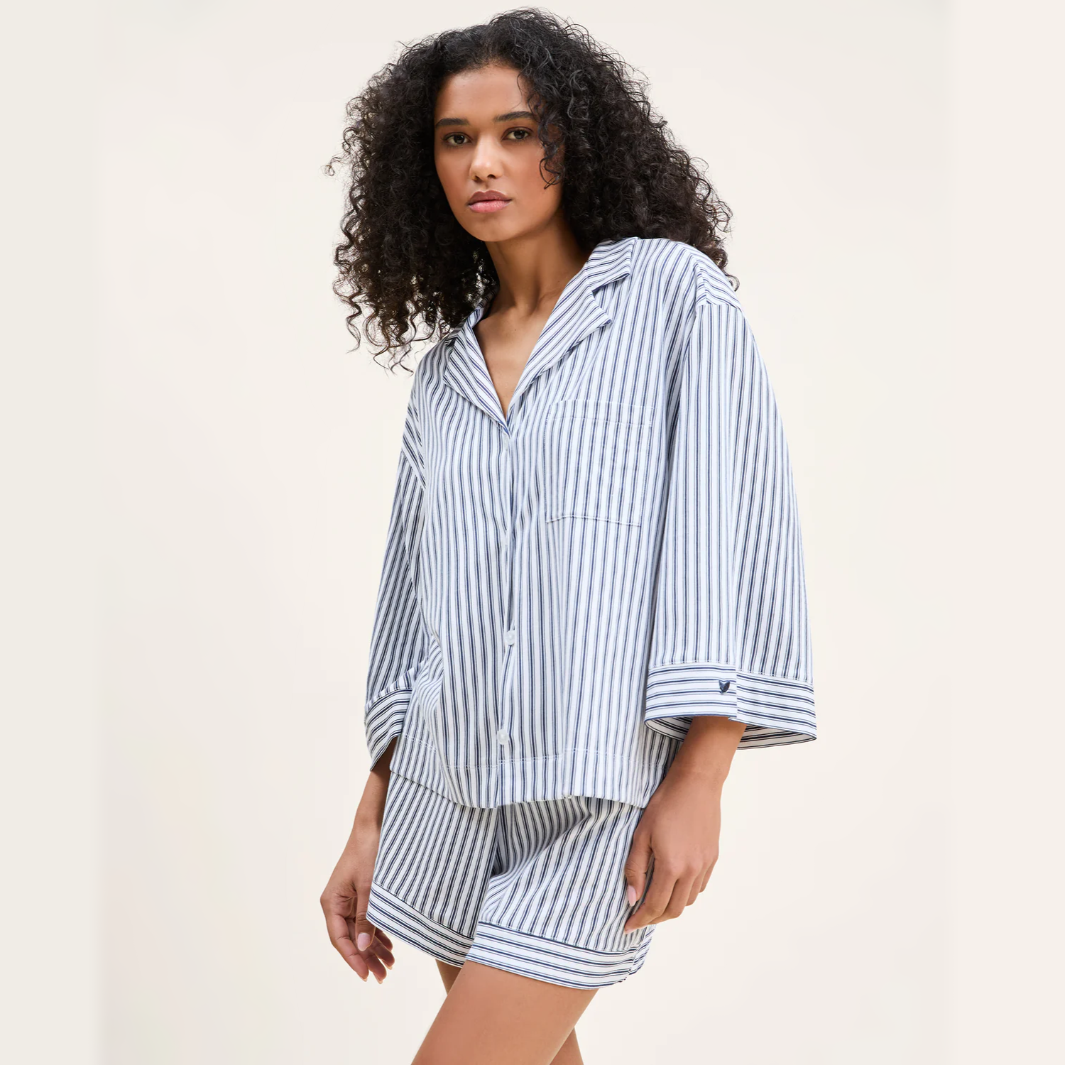 This bestselling Pima cotton pajama set is the apex of comfort and feminine tailoring: a well-considered three-quarter length sleeve and breezy shorts that feel relaxed yet perfectly polished.