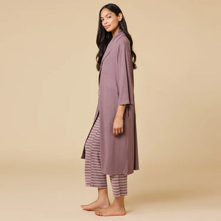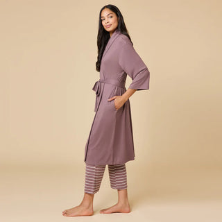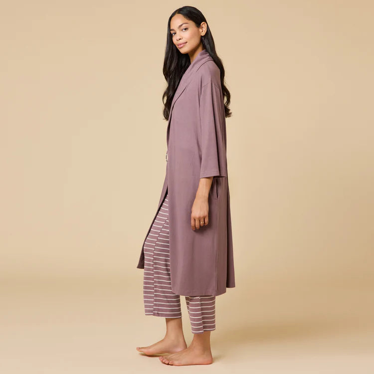 This lightweight robe wraps your skin in unbelievable silky smoothness from your shoulders to your calves. A shawl collar creates a feeling of comfort, sophistication and spa-like luxury. Two string ties inside the robe and an external tie attached to the back of the waist mean you can easily wear this robe for all-day lounging. This everyday essential is lightweight for all seasons and ideal for lazy weekend mornings when you want to look and feel casual, cozy and chic.