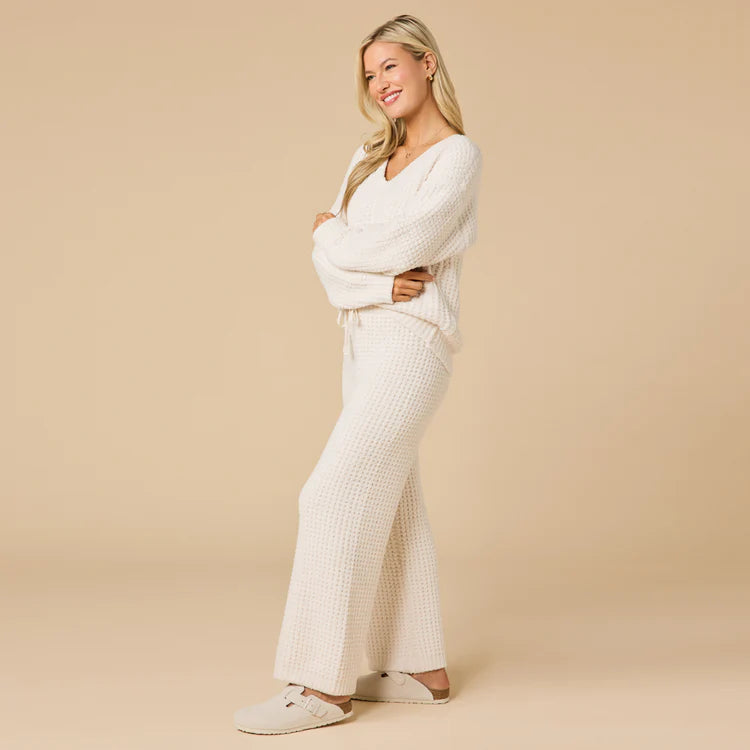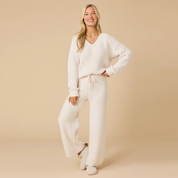 A new and cozy twist on Softies best-selling marshmallow fabric! Introducing: Marshmallow Waffle in a flattering and versatile two-piece boatneck lounge set. Designed to keep you cozy from head to toe all season long, this set features a long pant, a boatneck long sleeve top, and all new chunky, soft marshmallow knit inside and out. Say goodbye to the morning chill and hello to ultimate comfort!