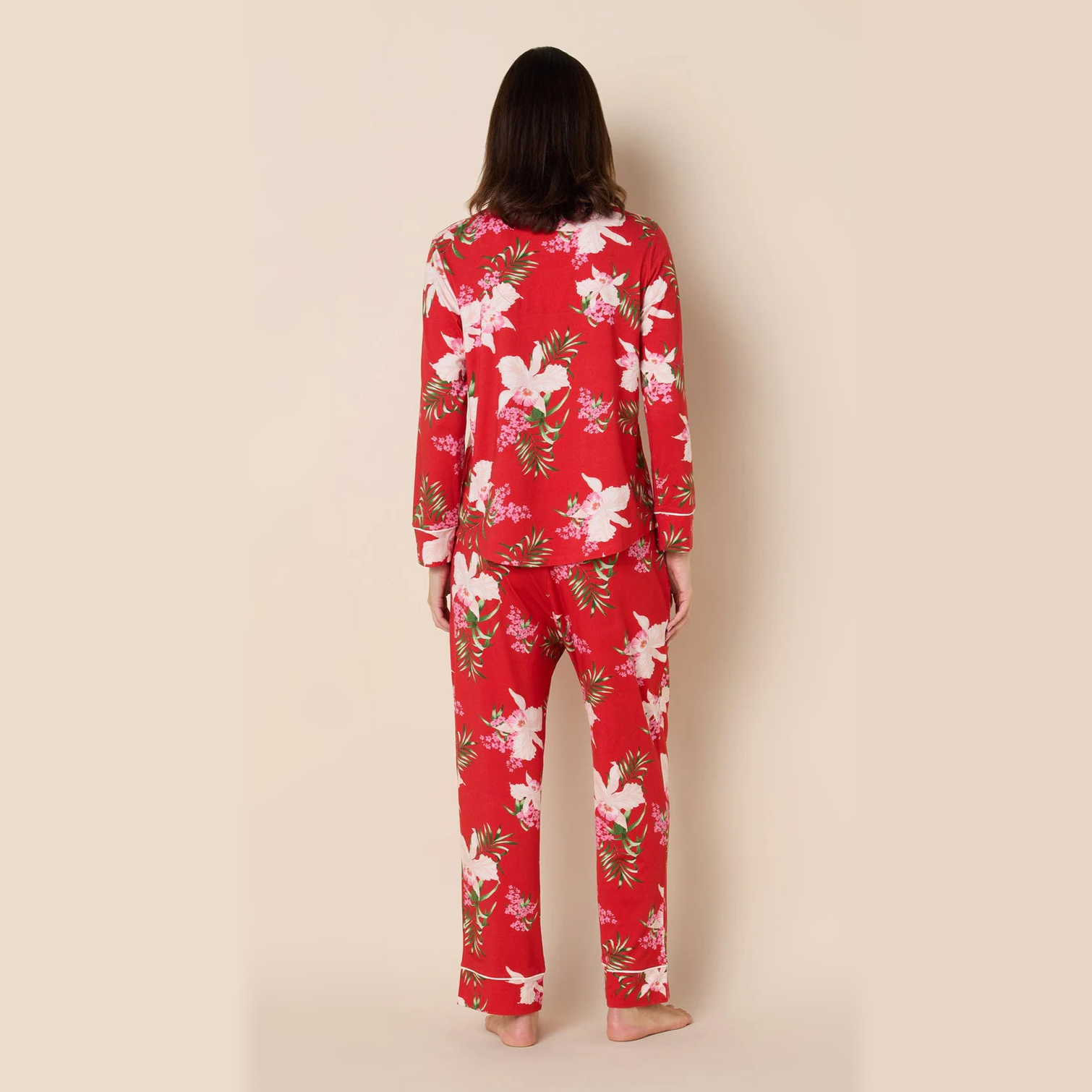 The Cat's Pajamas Flora Festiva Pima Knit Long-Sleeved Pajama Set