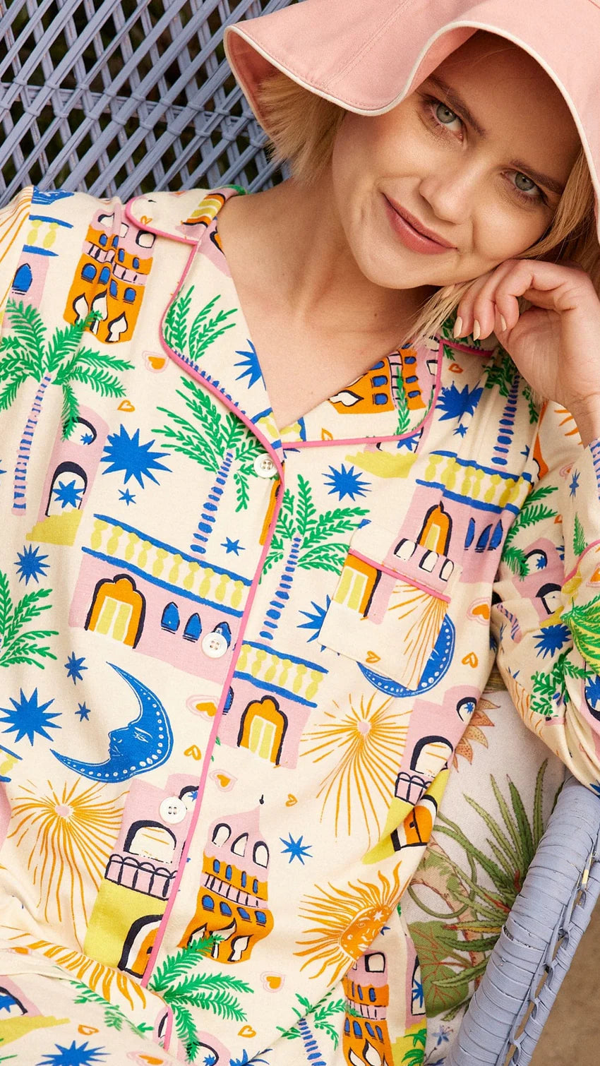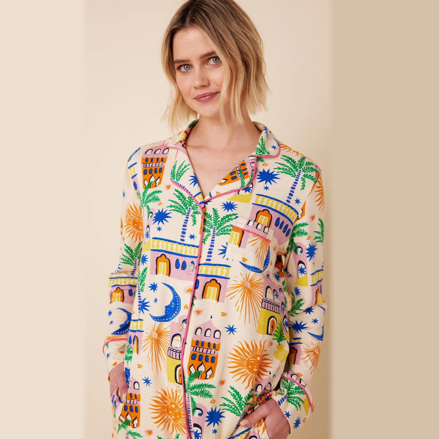 The Cat's Pajamas Moroccan Magic Pima Knit Long-Sleeved Pajama Set