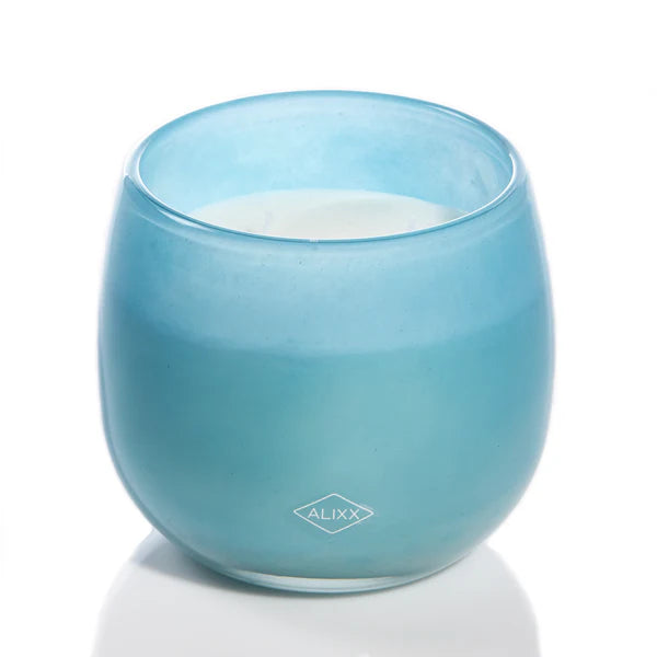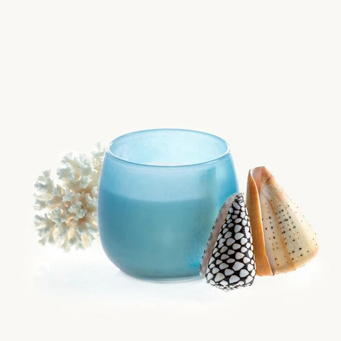 Inspired by the tidal island of Mont Saint-Michel in Normandie. A soothing yet energizing scent that will remind you of the irresistible scent of ocean waves. This coastal aroma is an uplifting mix of sea foam and sea salt. You will also notice hints of lily, patchouli and the soft touch of vanilla. The vibrant aqua glass adds a bright lively touch to any décor.
