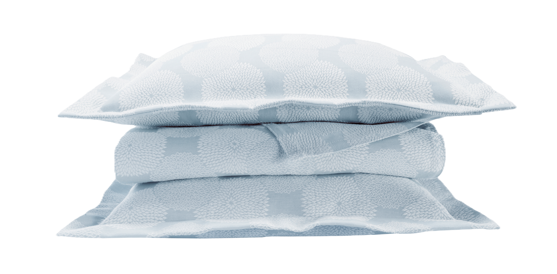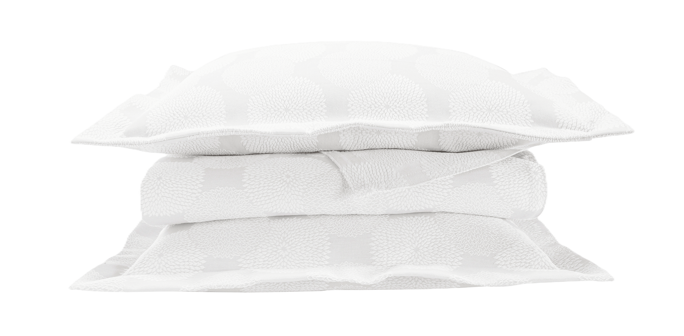 Stylish, contemporary and far from ordinary, Dahlia is a light weight woven design that work beautifully alone or in combination with all of Anne de Solène's bedding. Euro shams have envelope closures. Weighed at 380 g/m2. Made in Portugal.