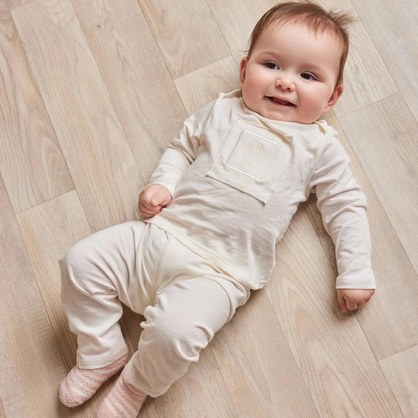 From Barefoot Dreams' Malibu Collection, this 2 piece set is made with organic cotton, providing a soft and comfortable fit for your baby. The long sleeve shirt features a crew neck and embroidered artwork on the front, while the pants have an elastic waistband and self fabric cuffs for easy dressing and a snug fit.