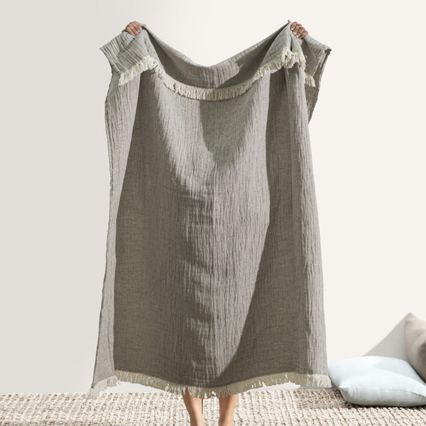 This cotton-linen blend comes in a range of neutral hues, is incredibly versatile, and has fabulous texture. It is the perfect layer for all seasons. Made in Portugal.
