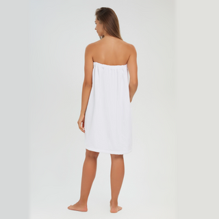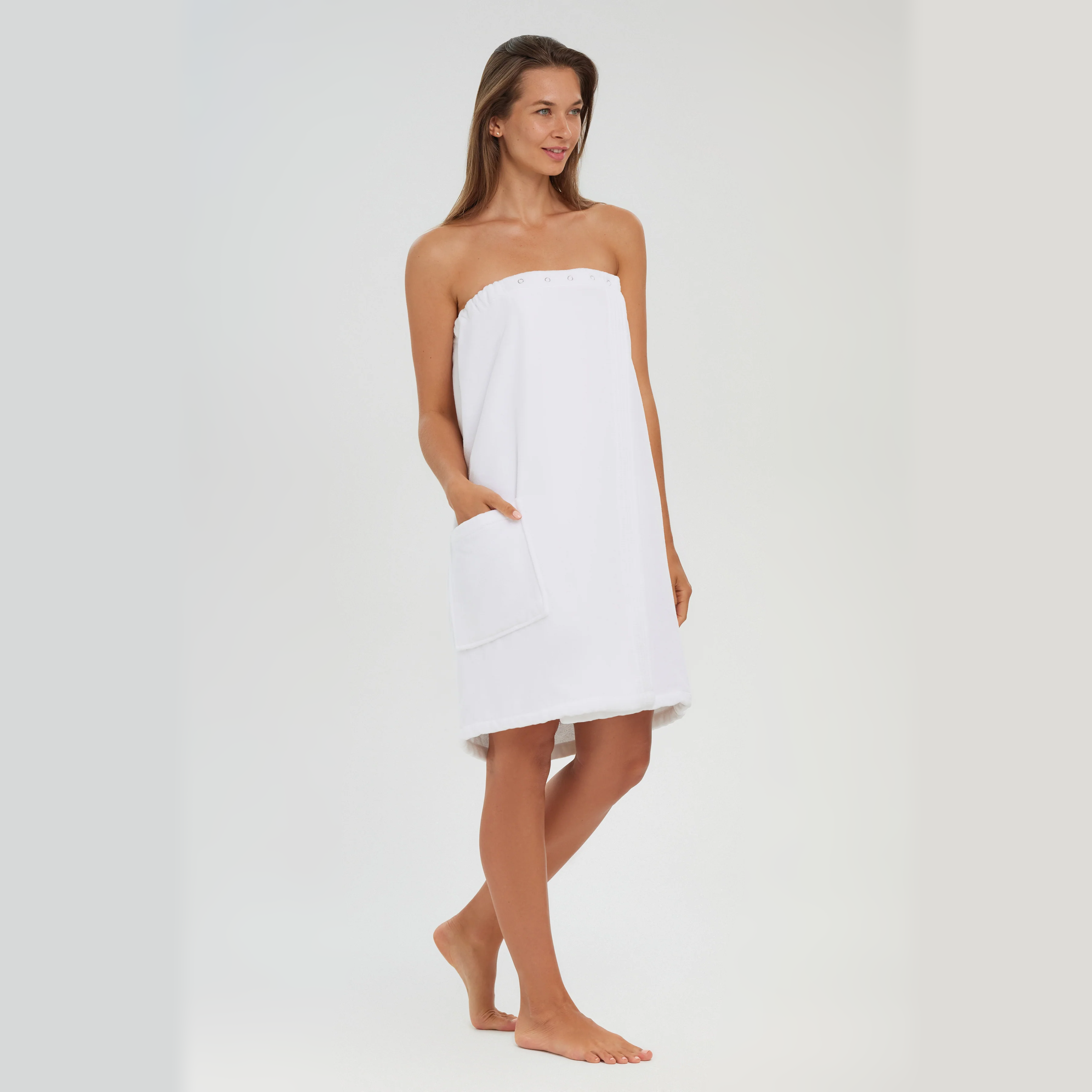 Step out of your bath or shower and into the comfort of a terry velour wrap. This bathing-essential securely wraps around your body to keep you covered and your hands free. This terry velour wrap is made of 100% cotton terry velour with a snap closure and a front pocket.