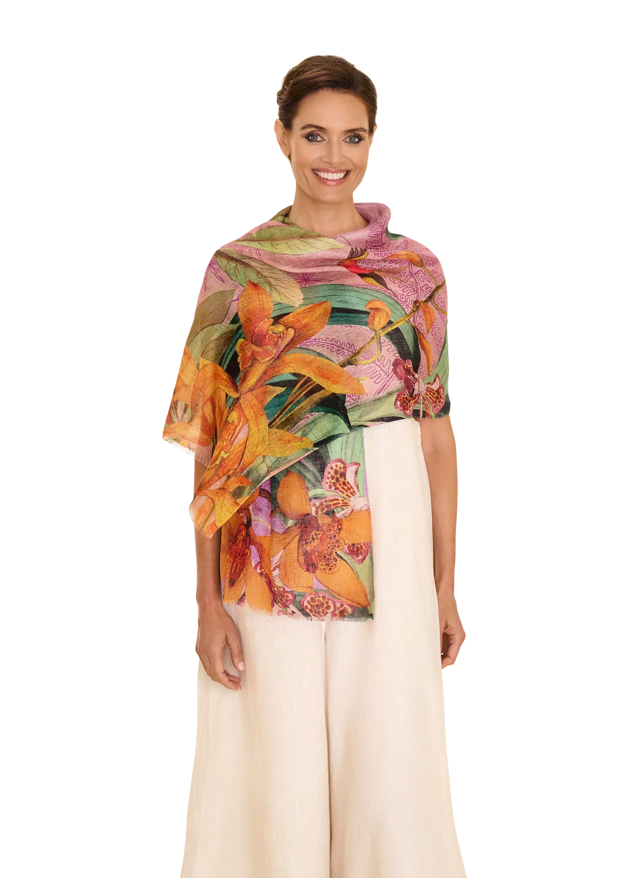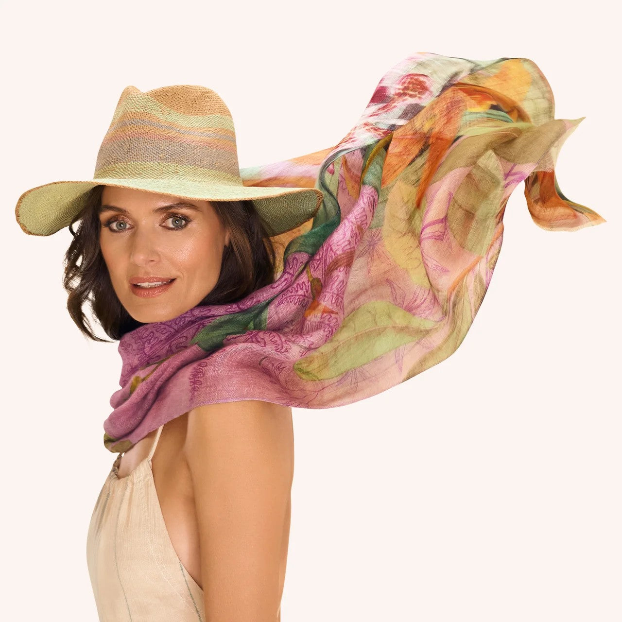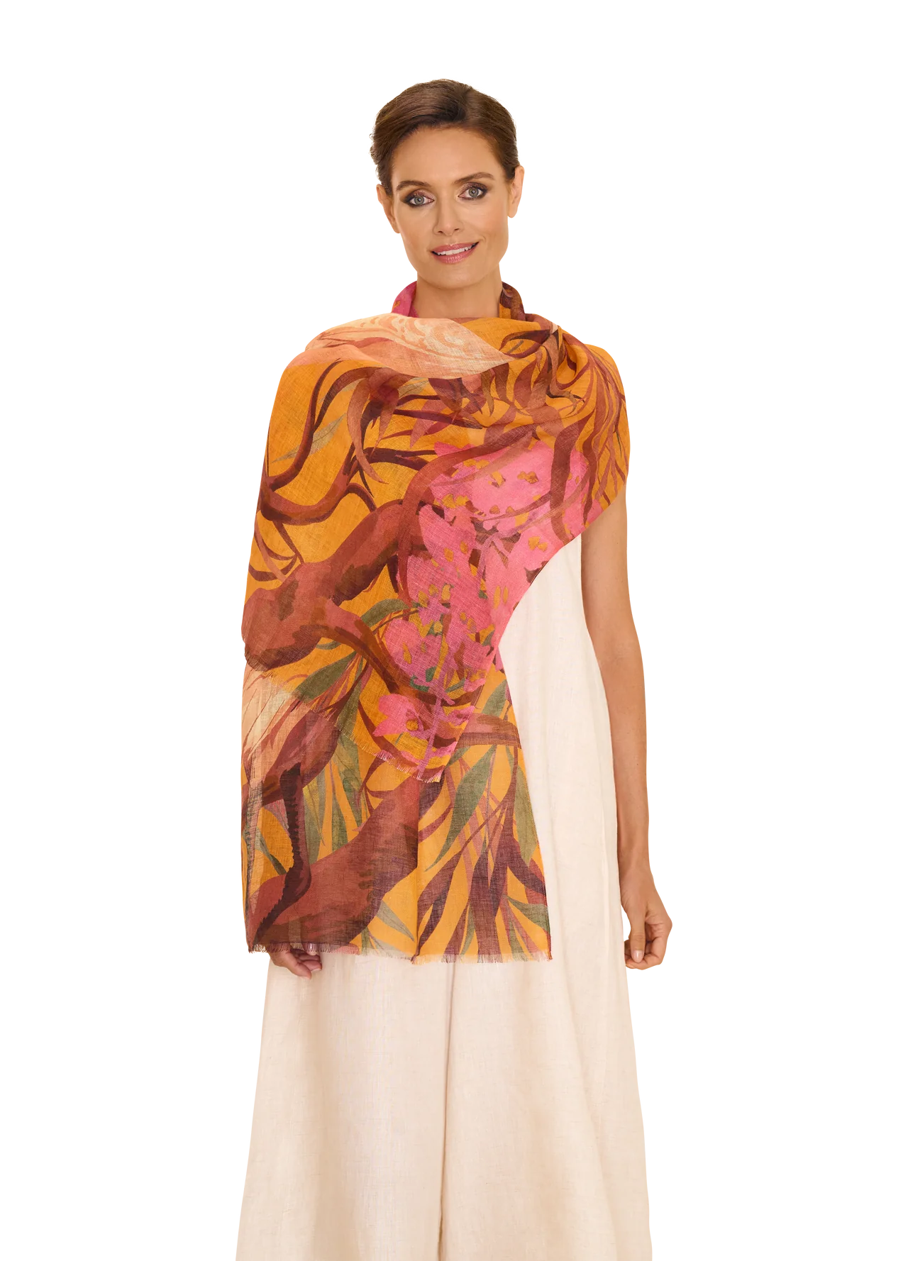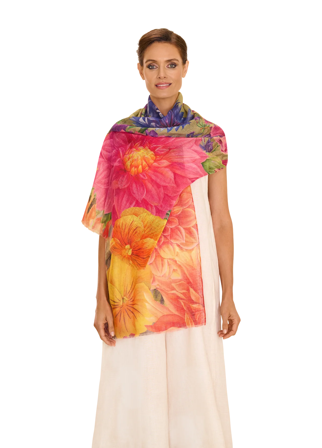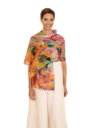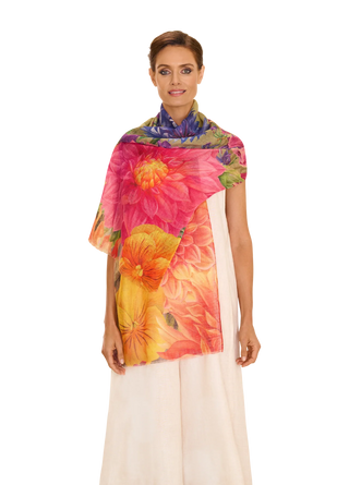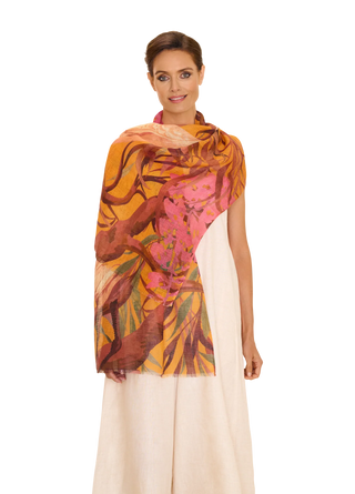 Create a harmony of exotic elegance and luxury. This blended scarf is the perfect way to feel free-spirited and effortlessly lighter. Wrap yourself in softness.