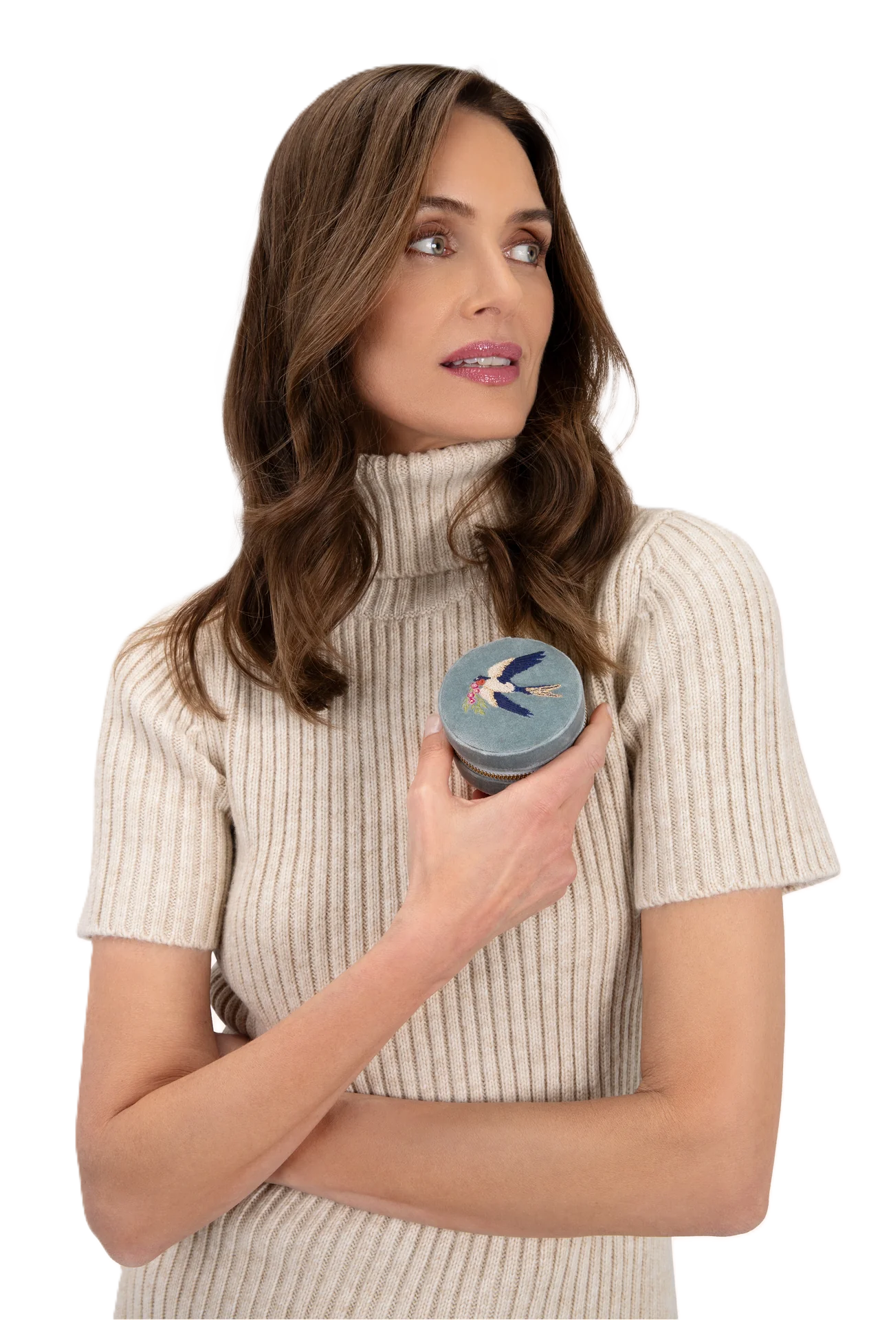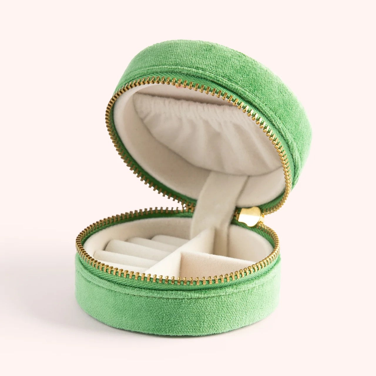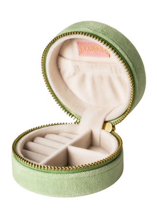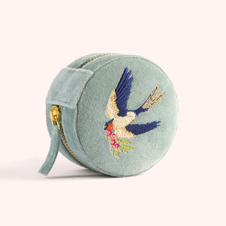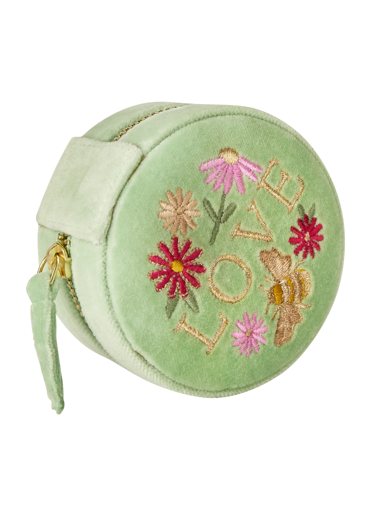 Keep your favorite jewels and trinkets safely zipped! Gorgeous hand-embroidered on velvet. Perfect for travelling, adding to your dressing table or having in your everyday bag.