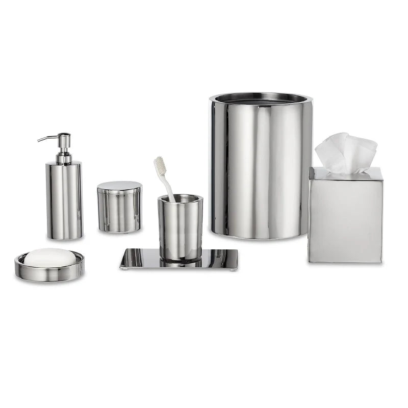 Heavy weight stainless steel with wide edge top. Roselli Trading Company’s bath accessories, including this set, are designed, and made exclusively for us and found only in four- and five-star hotels around the world. Purchasing a Roselli brand product brings the genuine experience of staying at a five-star luxury hotel into your home.
