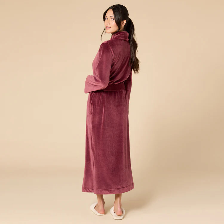 This robe's ultra-plush fabric is a comfortable yet stylish way to relax. For morning coffee on the balcony or for late night warmth, this versatile robe exceeds your comfort needs. This robe also features a super-soft attached belt and an inner satin ribbon you can tie for complete coverage and great fit.